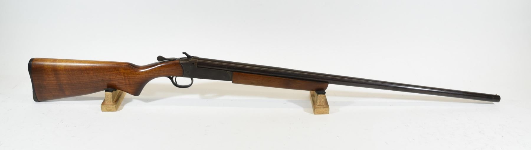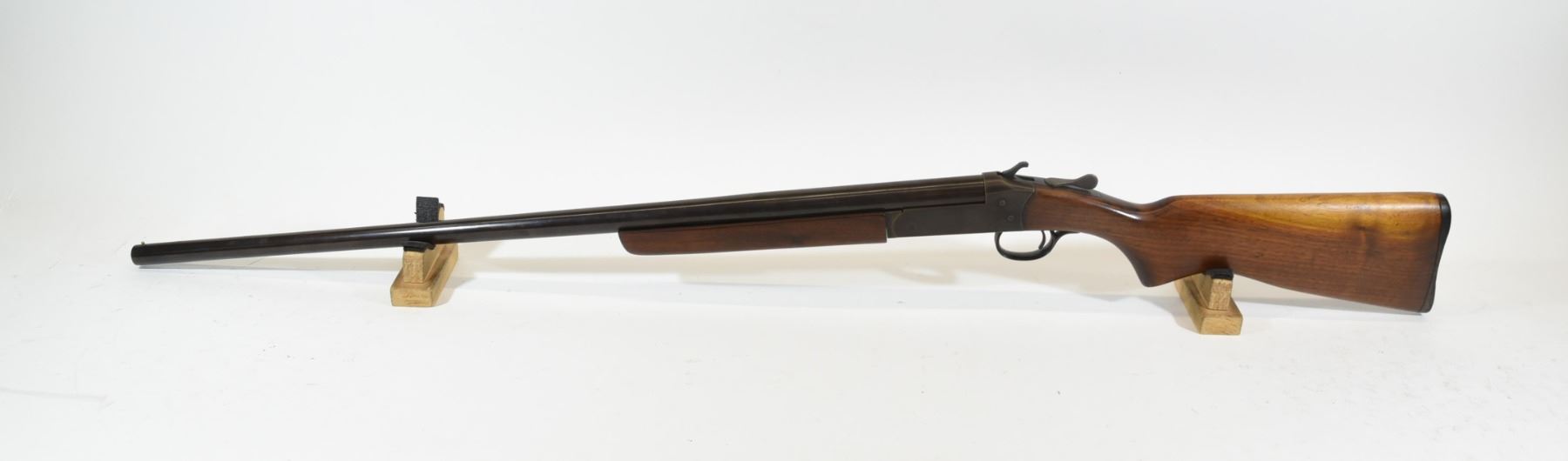 Non-restricted, single shot, 16 ga. x 2 3/4", 30" full choke barrel, SN 02868. Wood is good, bluing is brown, bore is good, barrel has a bulge in it about 1 1/2" from the muzzle.