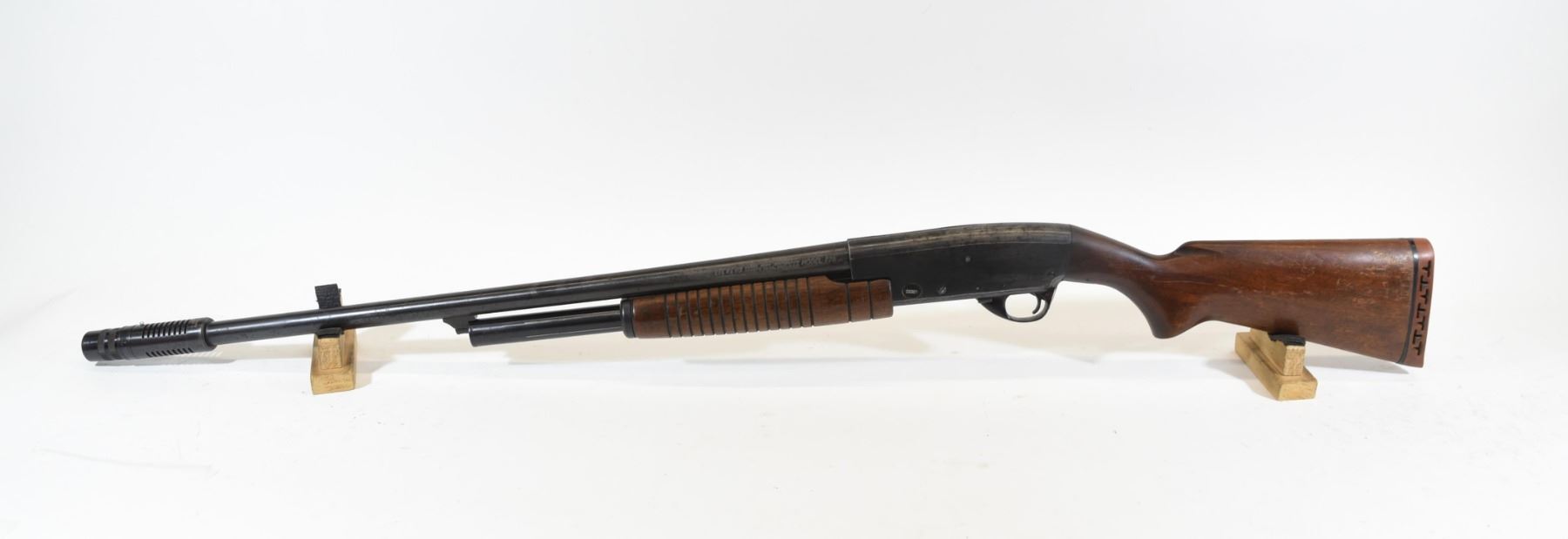 Non-restricted, pump action, 12 ga. x 2 3/4", 28" barrel with an adjustable Savage super Choke, SN none. Wood has some light scratches and dents, bluing is turning grey, bore is good, safety does not work.