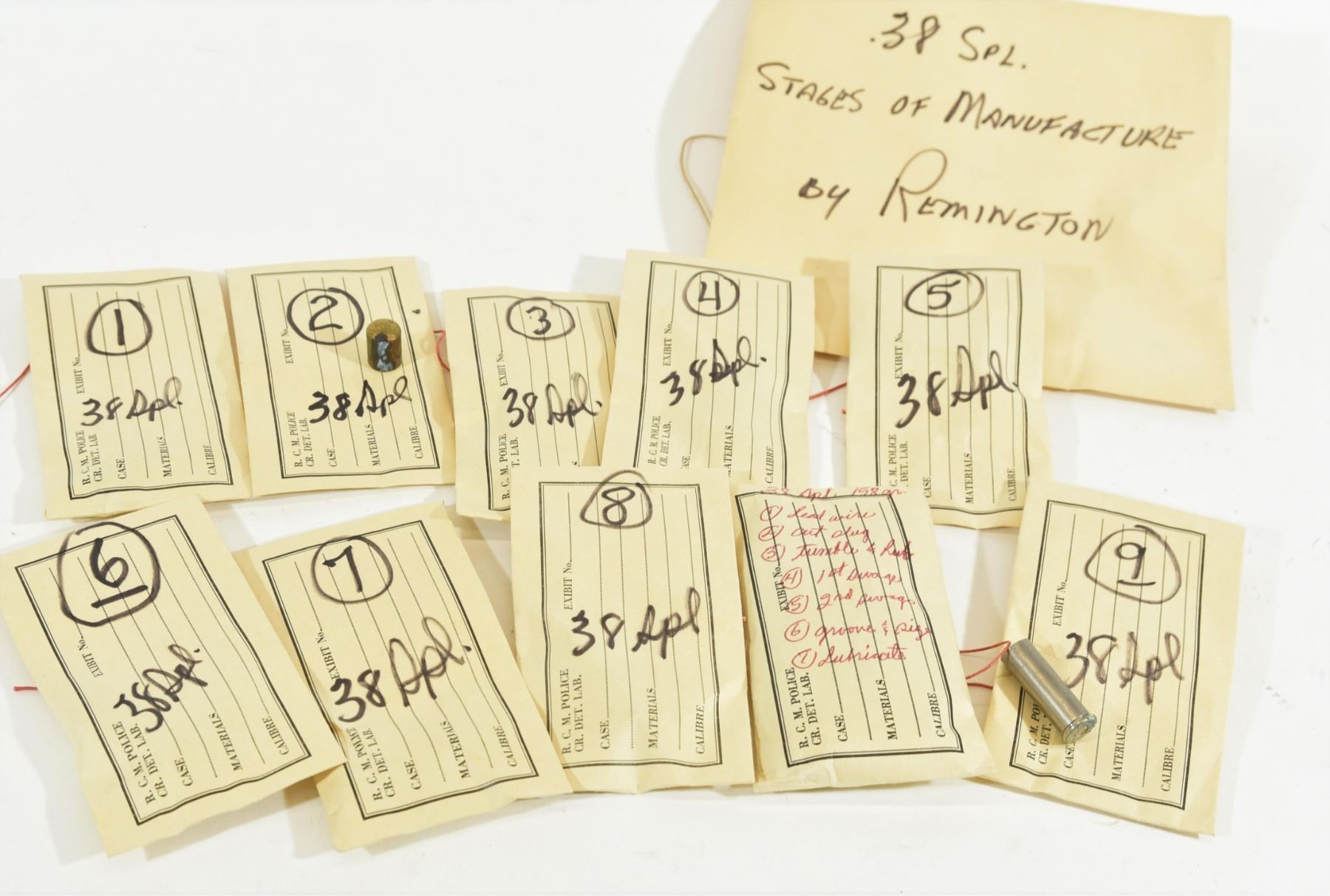 9 steps of case manufacture from cup to final case and 158 gr lead projectile steps.