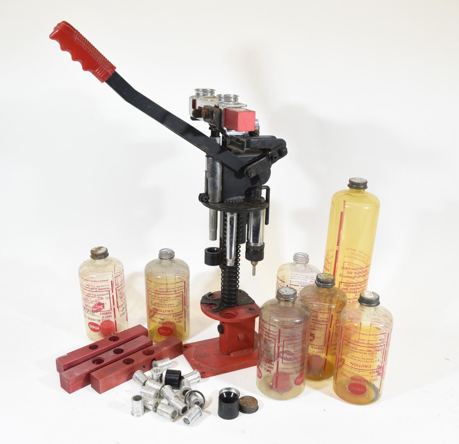 Extra charge bars, bottles, bushings, missing primer station.For 20 gauge