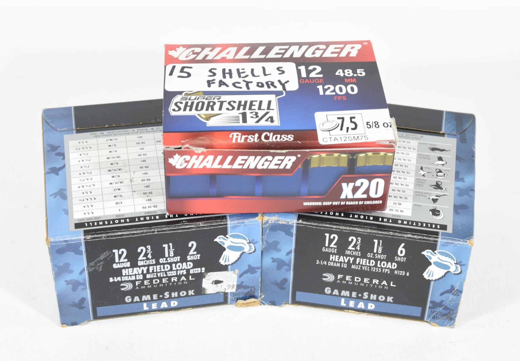 25 Federal #2s, 25 Federal #6s, 15 Challenger #7.5s.