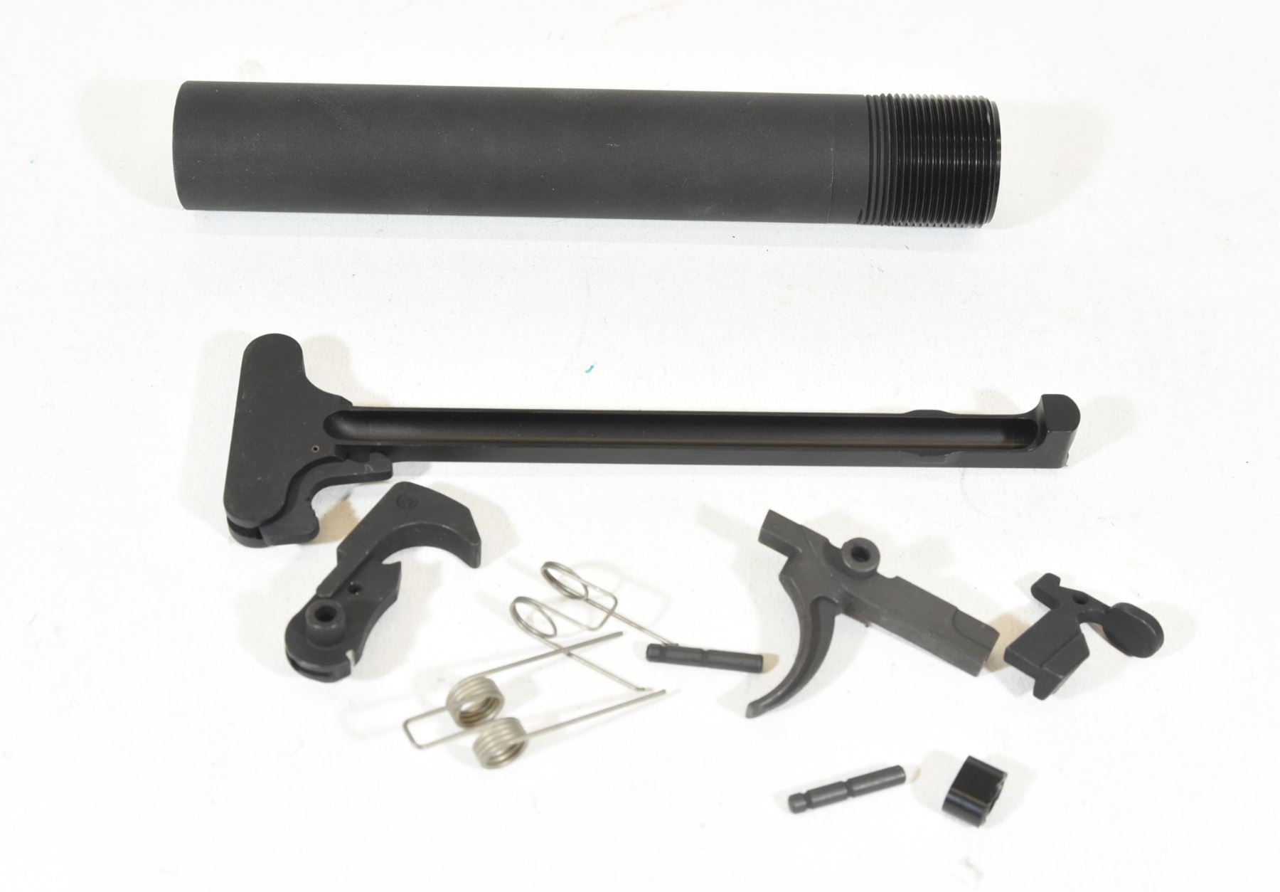 1) Buffer tube 2) Charging handle 3) Standard trigger assembly