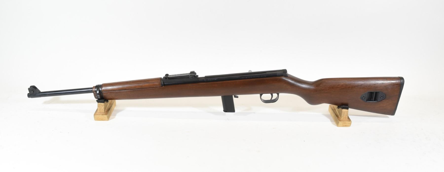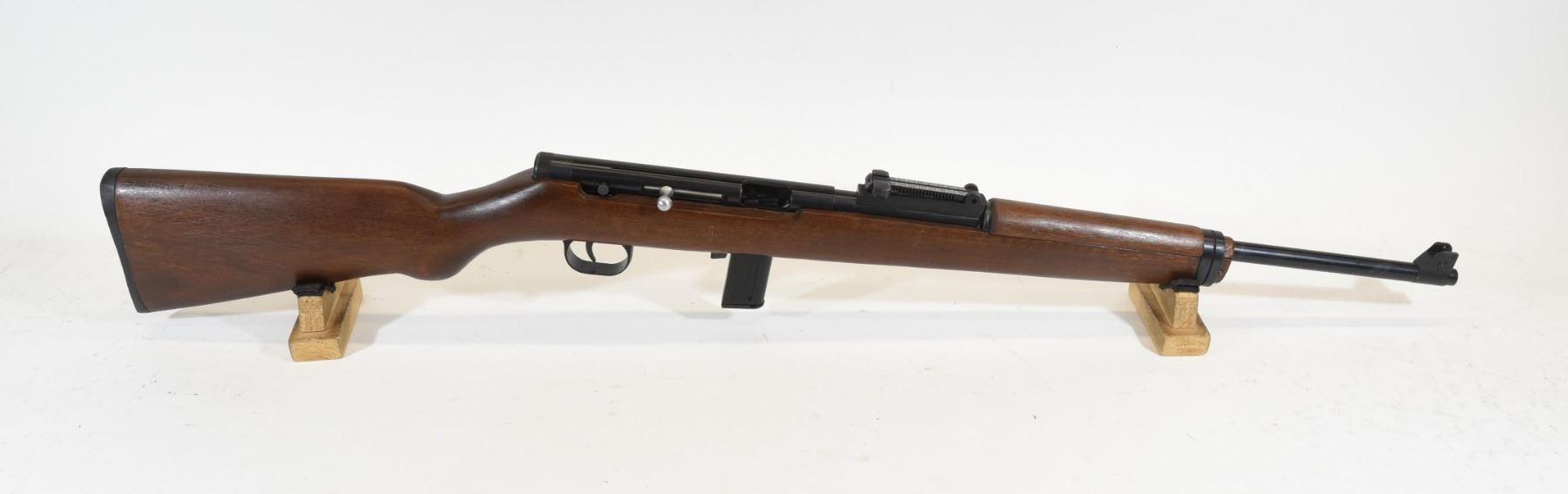 Non-restricted, semi auto, 22 LR, 20 1/2" barrel, SN 9512250. Wood has a couple dents, bluing very good, bore excellent.