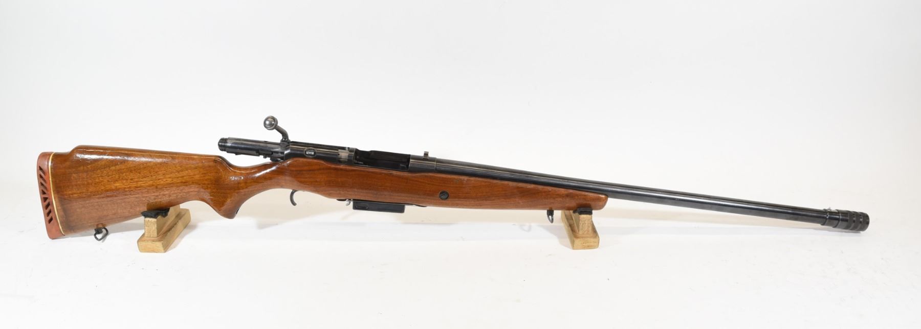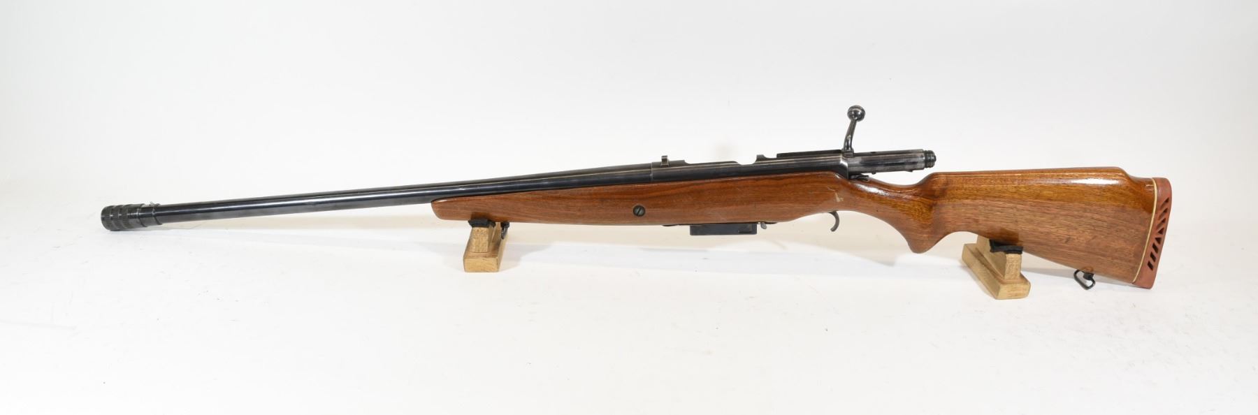 Non-restricted, bolt action, 12 Ga x 2 3/4", 26" barrel with adjustable choke, SN none. Wood has numerous scratches and marks, bluing is grey, bore has streaking marks. Missing trigger guard. For parts only.