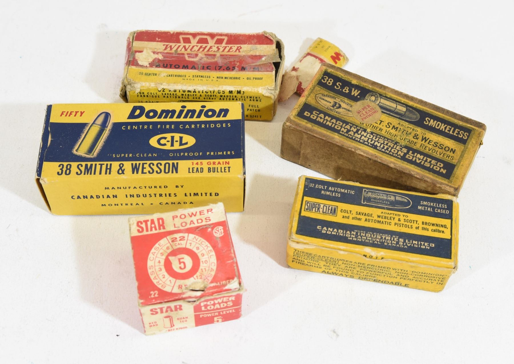 13 rounds WInchester 32 auto, 25 rounds Dominion 32 Colt Auto, 24 rounds CIL 38 S&W, 9 rounds CIL 38 S&W, 63 rounds Star 22 caliber power loads.