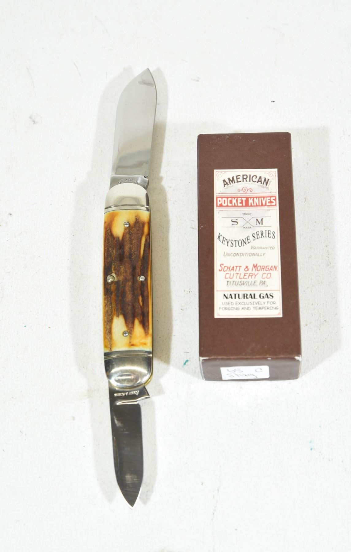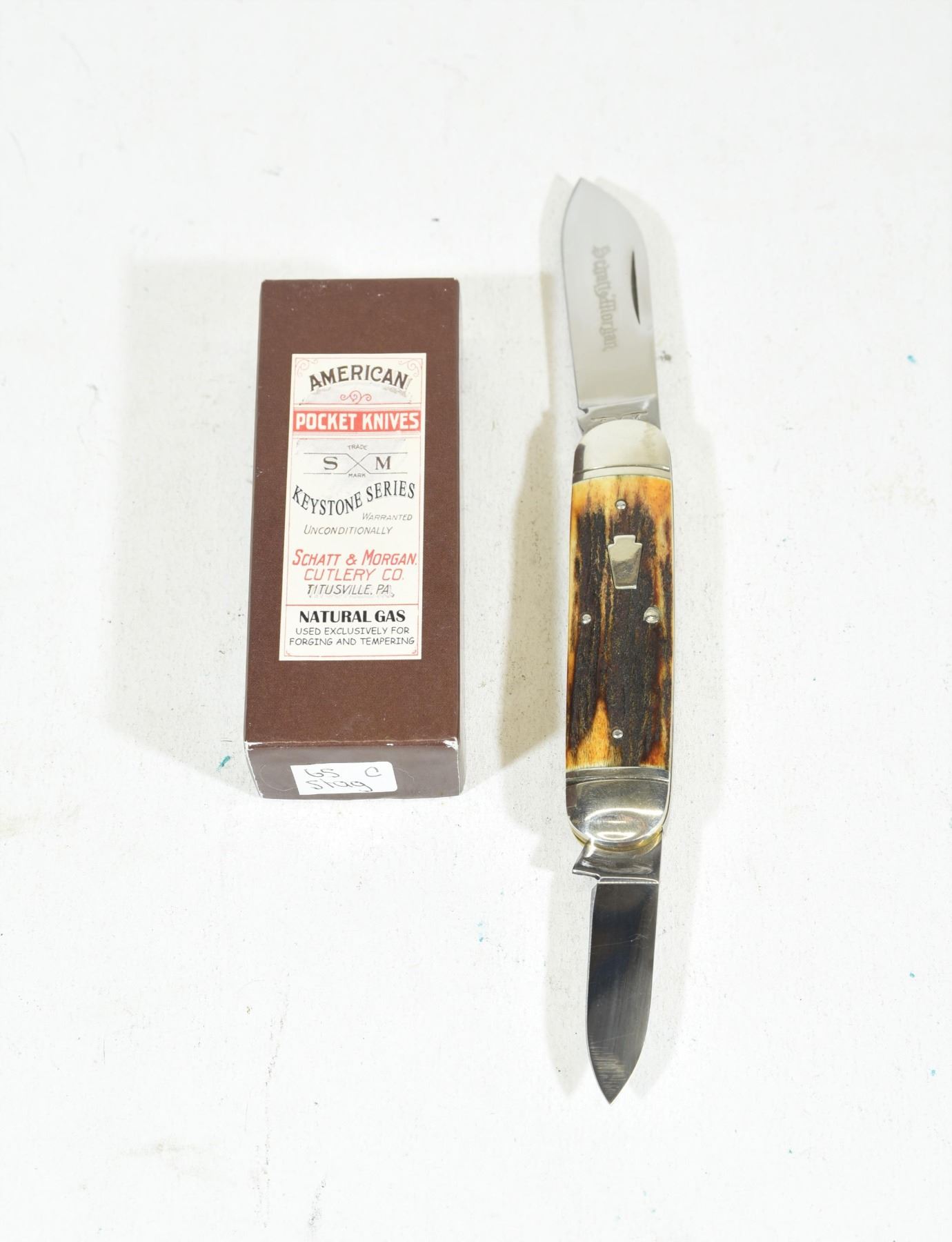 Overall Length: 6.125 Inches Closed Length: 3.5 Inches Blade Length: 2.5 Inches Blade Material: 420HC Stainless Steel @ 57-59 HRC Liner Material: Brass Handle Material: Genuine Stag