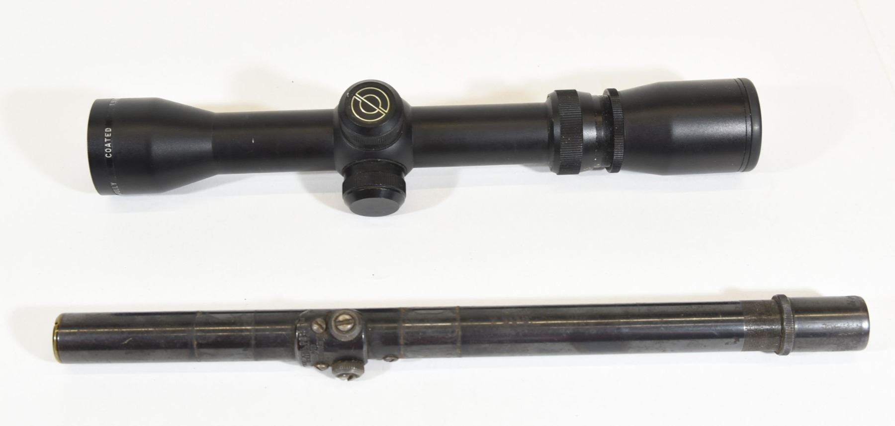 1) Simmons 8 Point1.5 - 5x32 shotgun scope 2) Vintage Weaver 4x scope, has surface rust on tube and no caps for the sighting adjusters