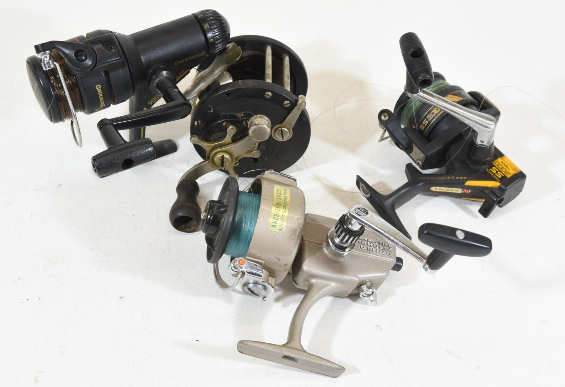 1) Penn N0. 85 salt water reel 2) Browning 3506 open face reel 3) Shimano SS2000 open face reel 4) Daiwa 7450HRL open face reel