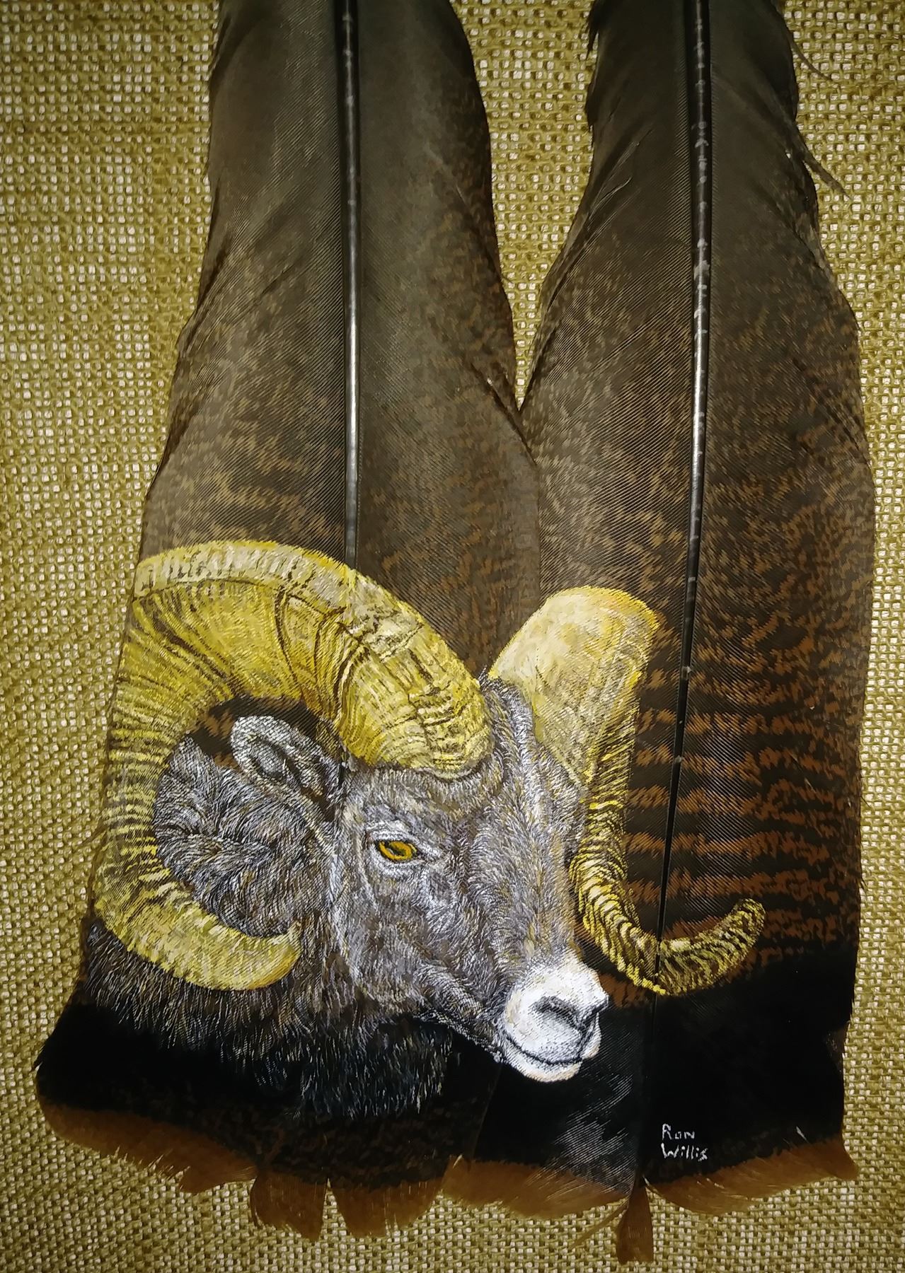 “BIGHORN” FEATHER ART OF A BIGHORN SHEEP