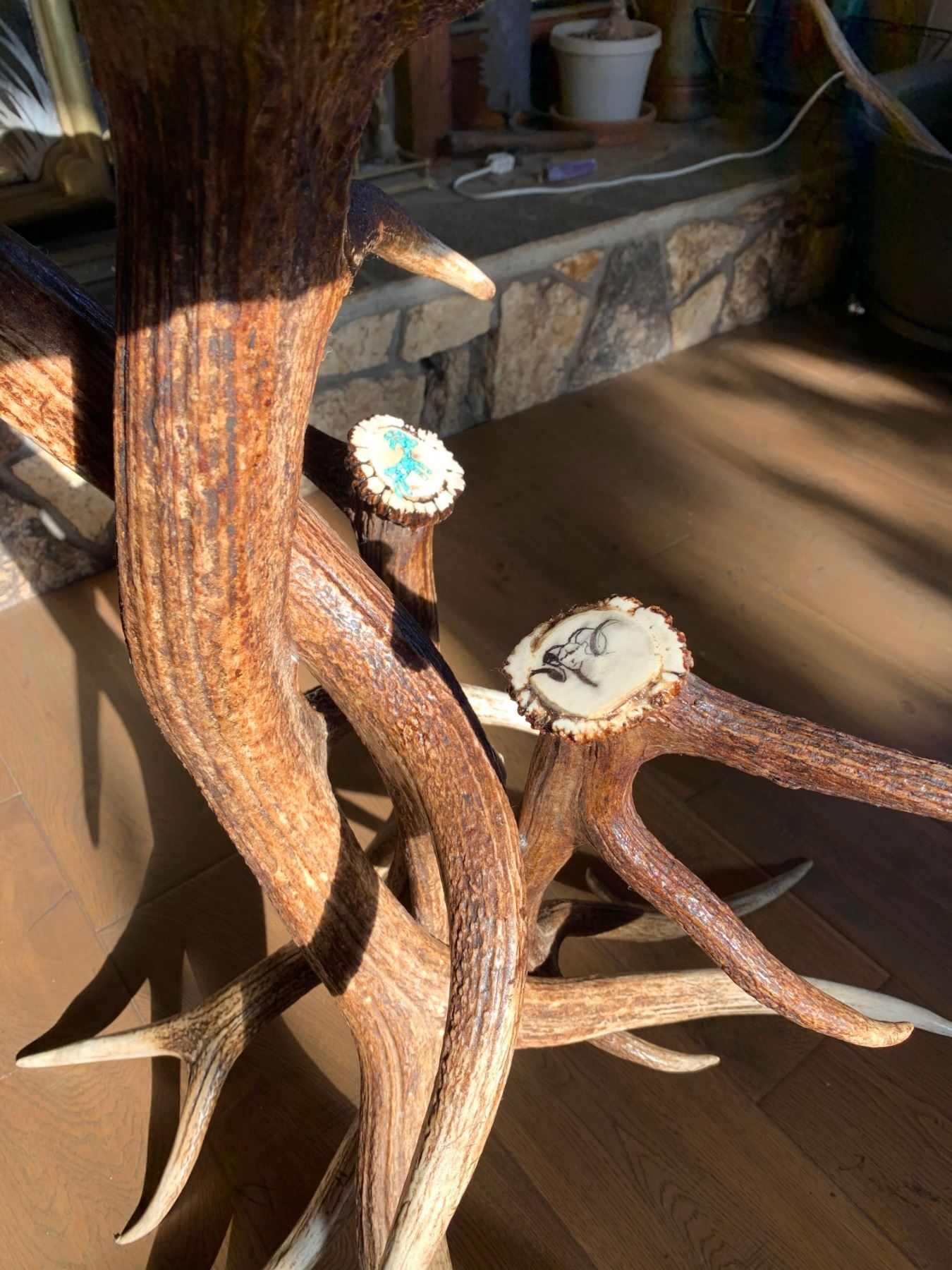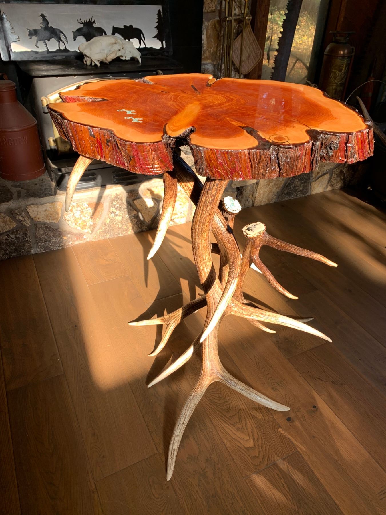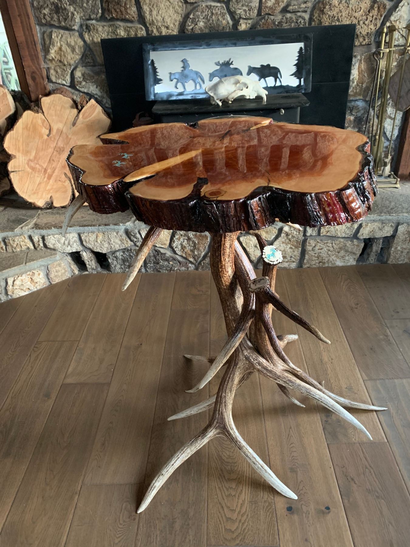 ANTLER HIGH TOP BAR TABLE W/TURQUOISE INLAY AND WSF LOGO