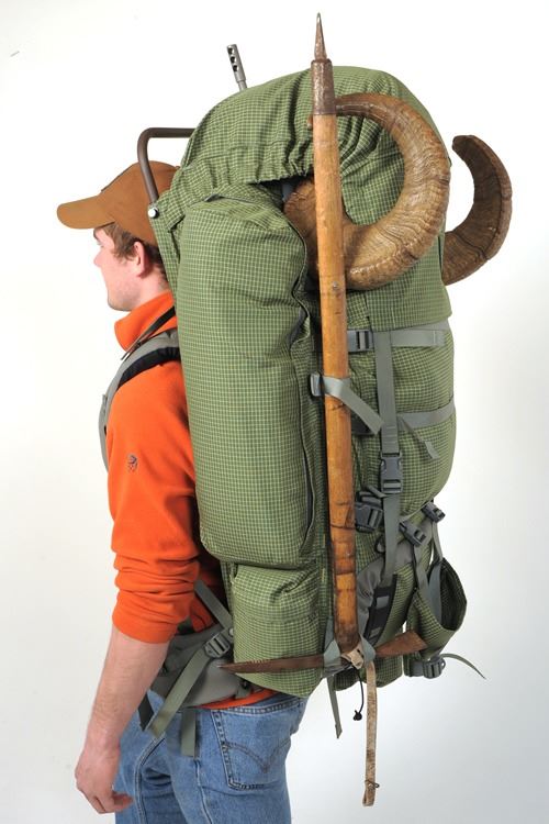 DONATION: Barney’s Frontier Gear Pinnacle Pack. We currently stock all bags in a foliage grey color. 500 Denier Dyneema reinforced Cordura fabric. Volume: 7800 Cubic Inches. Compartmentalized Pockets. Integral Rifle Carrier System. Kevlar bar tack stitching. Weight: 4 lbs. 1 oz. Weight with framE: 8 lbs. 7 oz. The PINNACLE Bag was designed for our Alaskan Guides who put their bodies to the test hauling gear and trophy animals over some of the worlds most rugged backcountry. This pack features a 7800 cubic inch single compartment that runs the full length of the Freighter Frame, eliminating the meat shelf. With 8 external pockets including 1 oversized spotting scope pocket, 1 top, 1 front, and 4 side. 4 large compression straps along the back of the pack minimize the bulk when not carrying full loads. This pack also provides two rifle scabbard options one of which runs through 3 size pockets and protects your rifle scope from the elements. The second is on the backside of the pack and can also be doubled as a bow carrier. The Pinnacle is constructed of 500 Denier Cardura fabric with Dykema reinforced checker stitching. Weighing in at just over 8.5 pounds with the frame, the Pinnacle gives a hunter the capacity necessary for those long-extended stay hunts. Please select desired frame separately.