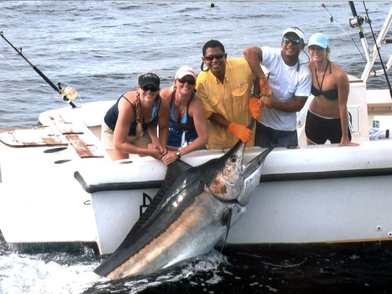 Accommodations are in casitas surrounding the 3000 sq. ft lodge right on the beach. Dine inside or outside, take a swim in the pool, explore the beach or the surrounding forest. The area is home to many species of beautiful tropical birds. Everything is included except tips and your airfare to David Panama. Meals, Lodging, fishing, boats, all tackle and round-trip transports to the airport in David. You will fish for Marlin, Sailfish, Tuna, Roosterfish, Pargo and Dorodo for three full days, with the help of your own captain and first mate. Trip may be upgraded to add additional days, Fishermen or Non-fishermen or the VIP package including two nights in Panama City and more. This package even includes your fishing license.