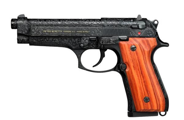 This extremely Limited-Edition Beretta 92FS pistol is one of only six pistols that elevates this storied pistol line’s superb functional characteristics into an elegant piece of highly, hand-crafted art. This specific pistol features a one-of-a-kind floral bas-relief, hand engraved barrel, slide, and frame complete with unique custom Kingwood grips.