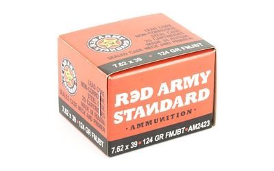 Introducing Century Arms Red Army Standard ammunition. This new 7.62x39 ammunition features a 124 grain lead core full metal jacket boat tail. Sealed pimers and case necks add to the value of this non-corrisive steel cased ammo.