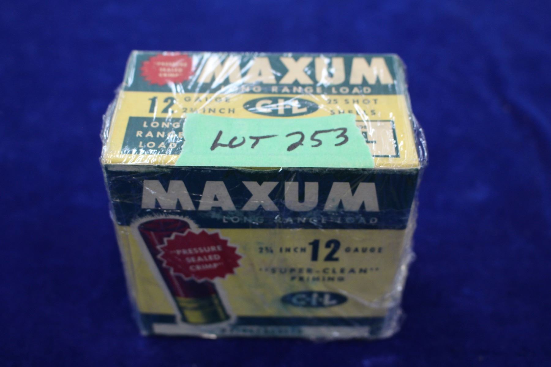 Lot 253 Full Box of 25 Maxum, 12 ga., 2 3/4", #5 Shot, Pressure Sealed Crimp