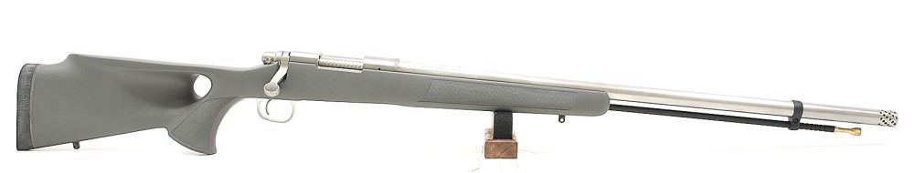 Ultimate Firearms, Inc. makes the BP Express, the world's finest custom muzzleloader. With velocities approaching 2400 feet per second with a 300-grain bullet, the ability to burn up to 200 grains of Pyrodex pellets, and an easy two-minute cleanup, this is truly a scientifically engineered long-range muzzleloader that harbors tremendous accuracy and power. This muzzleloader has documented kills on big game in excess of 500 yards. The BP Express has fired five shot groups of one-half inch at 100 yards. This rifle has been tested to over 125,000 psi breech pressures, which would cause failure in most any other muzzleloader. It has a lugged, locking bolt with two blow ports to prevent primer blowback. Due to the patented ignition system, there are no gasses expelled through the breech plug. This muzzleloader is primed with a unique, patented, .45 caliber brass casing with a magnum rifle primer which is ten times hotter than a .209 primer. The casing surrounds the nipple meaning no blowback. Gone are the days of removing breech plugs and scrubbing tiny parts. This firearm is scientifically engineered to such tight tolerances that there is no fouling blown down the threads during ignition, thus no need to remove and clean it. Simply clean this muzzleloader from the bore as you would any other weapon.