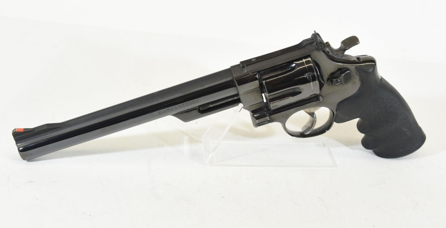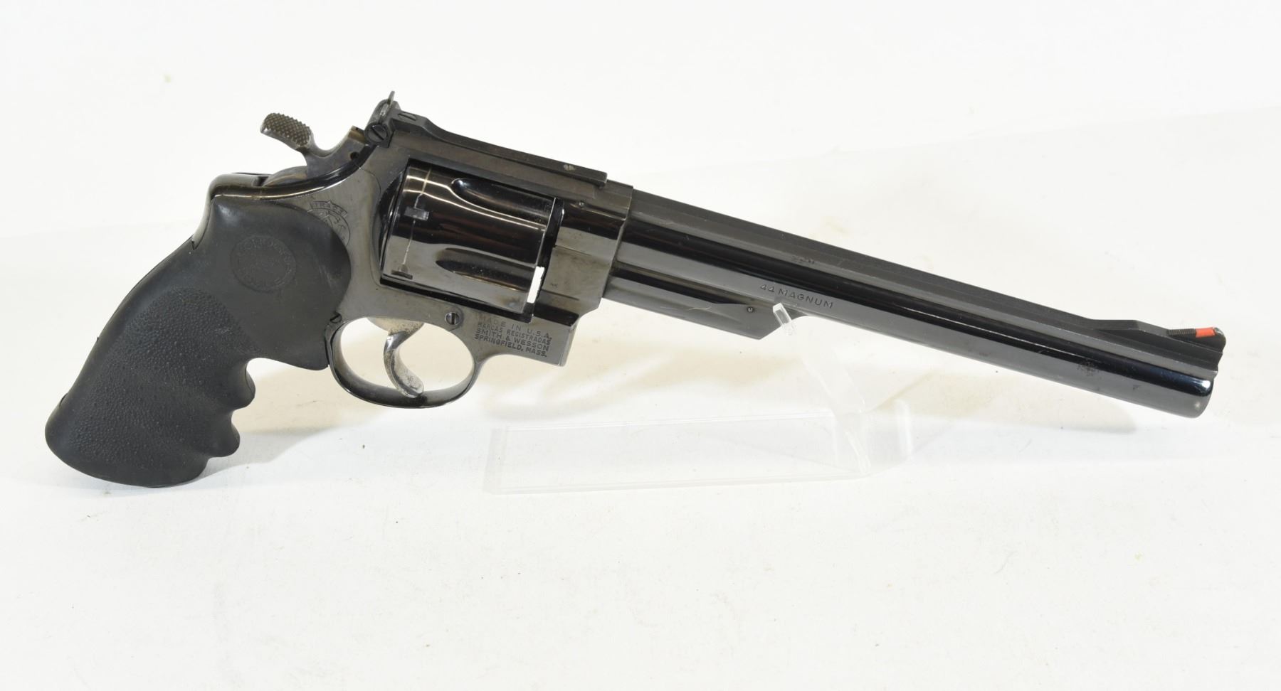 Restricted, revolver, 44 Magnum, 213mm barrel, SN N137553. Hogue rubber grips very good, bluing has some scratches, wear at muzzle, bore excellent.