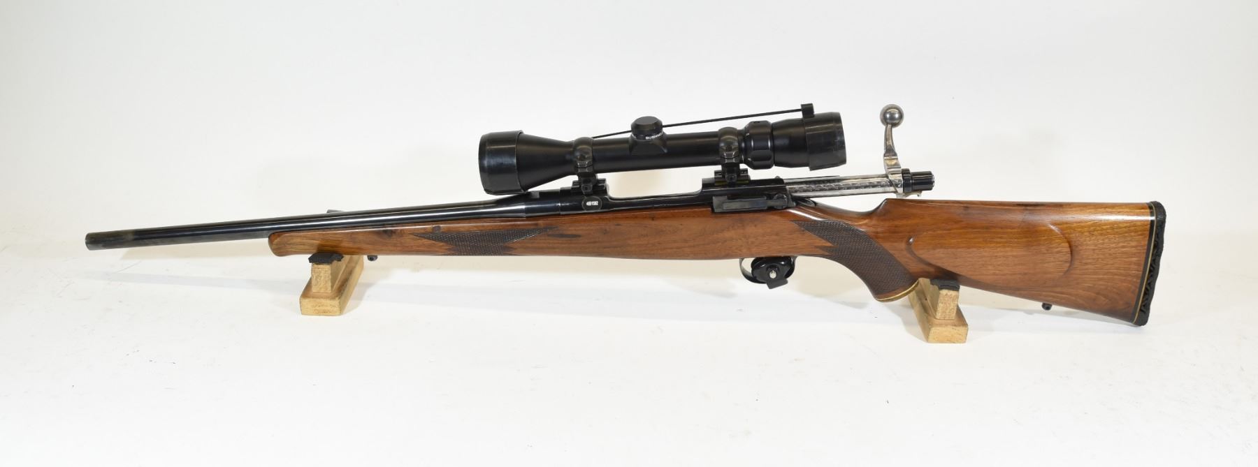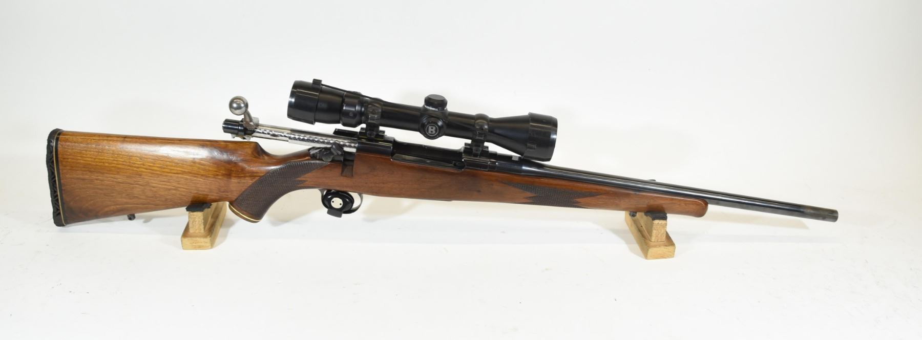 Non-restricted, bolt action, 303 British, 18" barrel, SN none. Wood has a repaired chip in butt stock and a small crack at back of receiver, bluing is worn at muzzle, bore is very good, comes with a Bushnell 1.5 -6 scope.