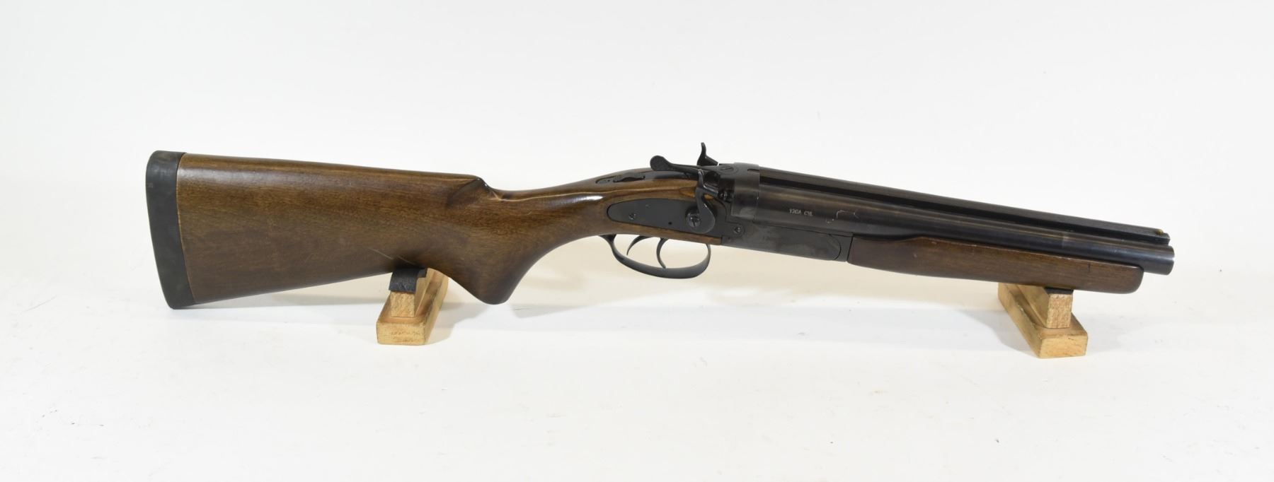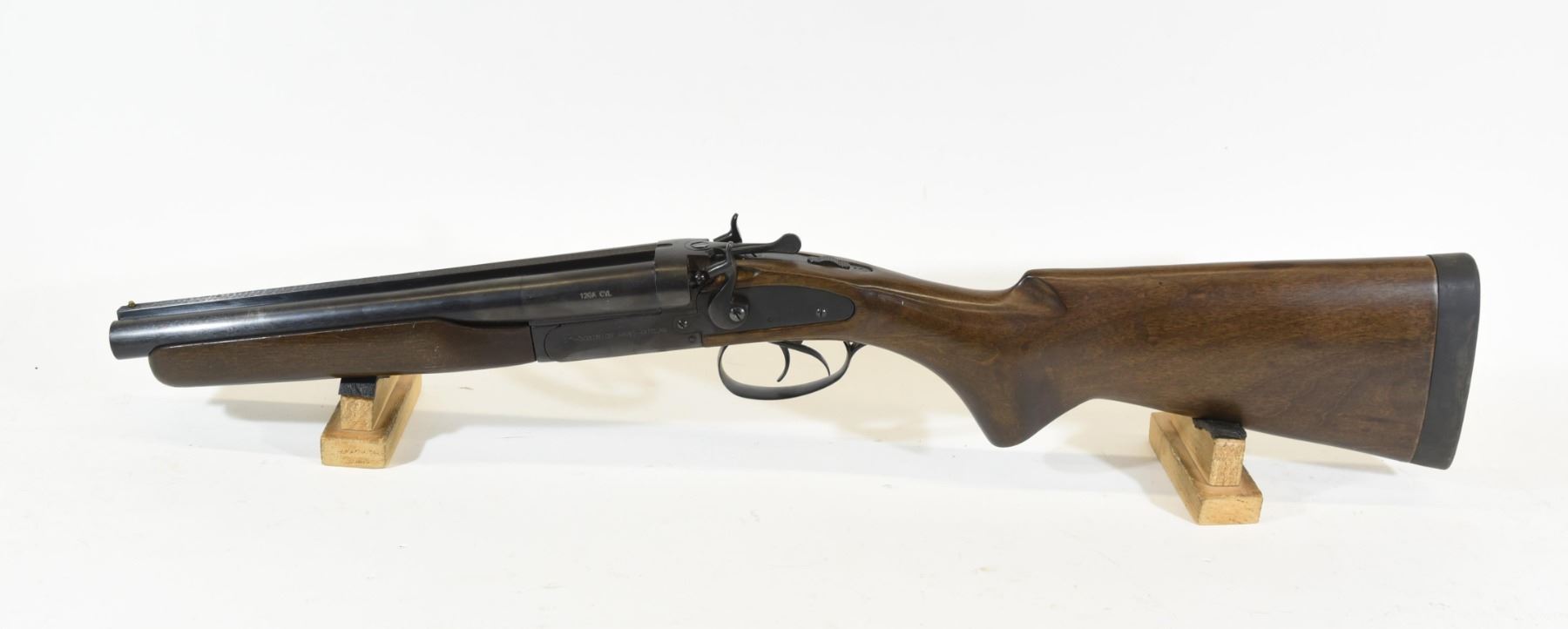 Non-restricted, multi-barrel, 12 Ga x 3", 12" barrels with open cylinder chokes, SN 1260353. Wood has some dents and scratches, bluing scratches, right bore has a deep pit mark.
