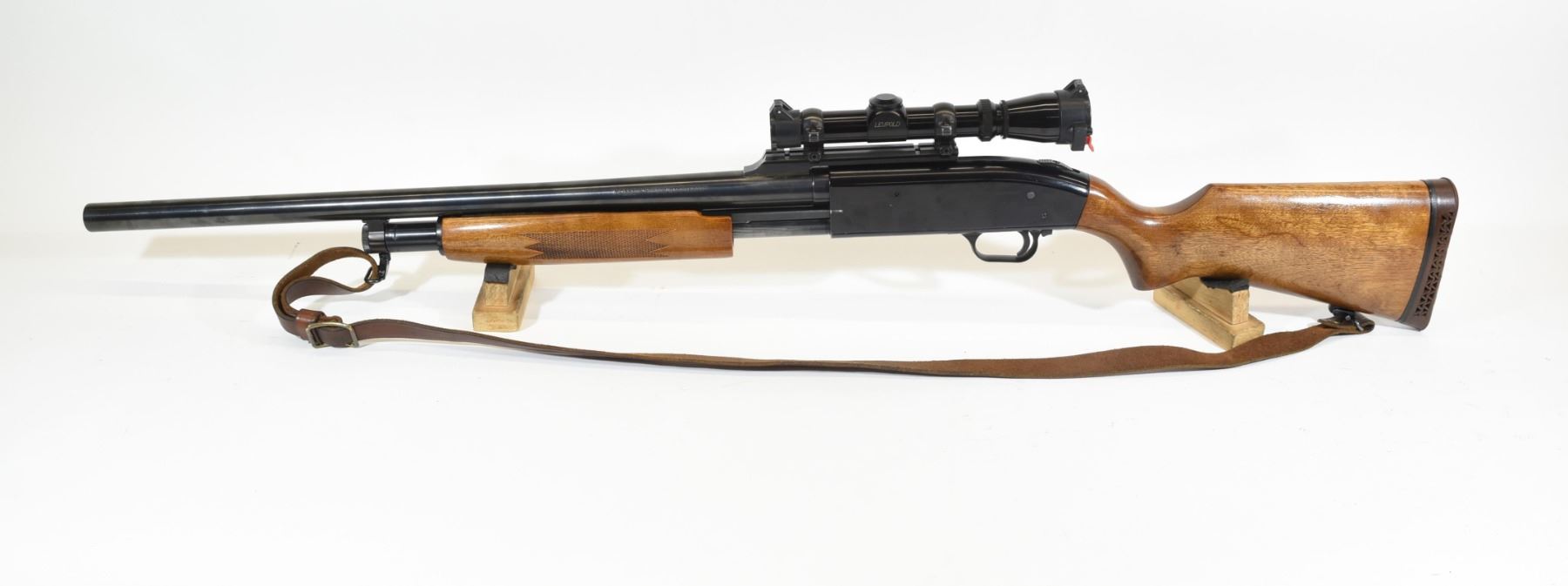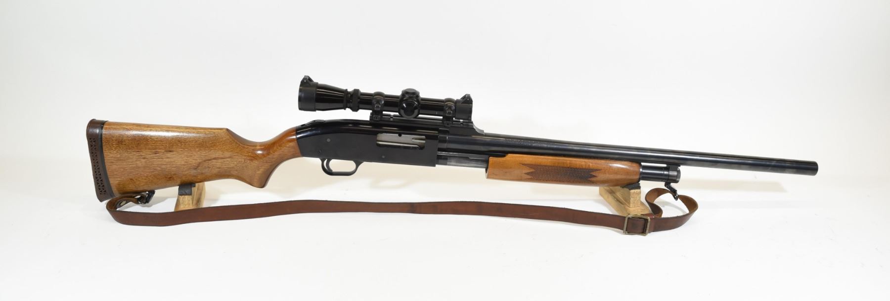 Non-restricted, pump action, 12 Ga x 3", 24" rifled barrel, SN K613751. Wood very good, bluing has some scratches, bore excellent. Comes with Leupold 1-4 x 20 scope and a sling.