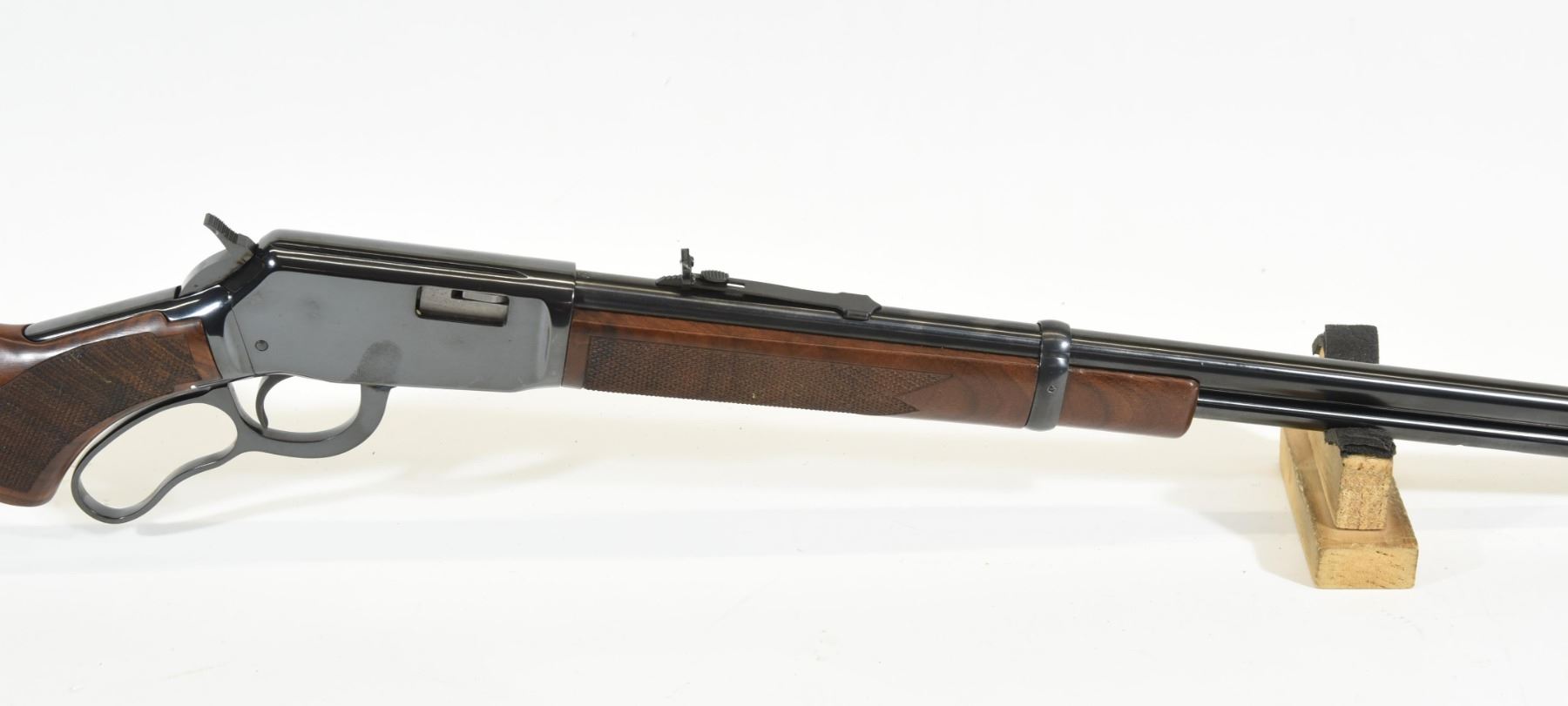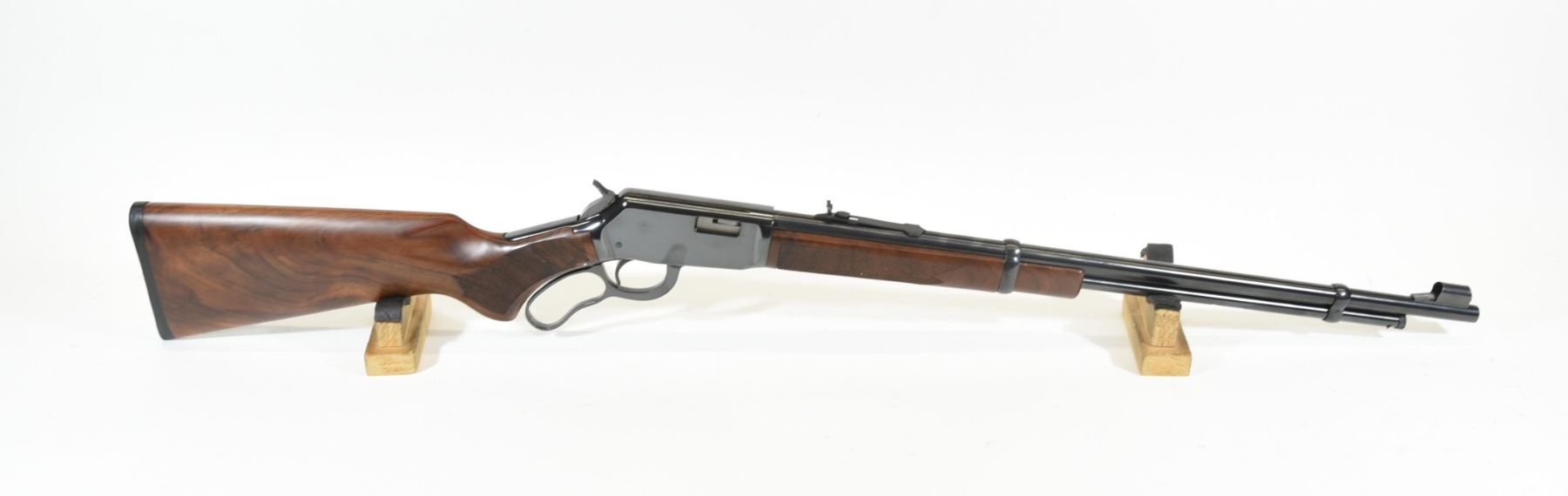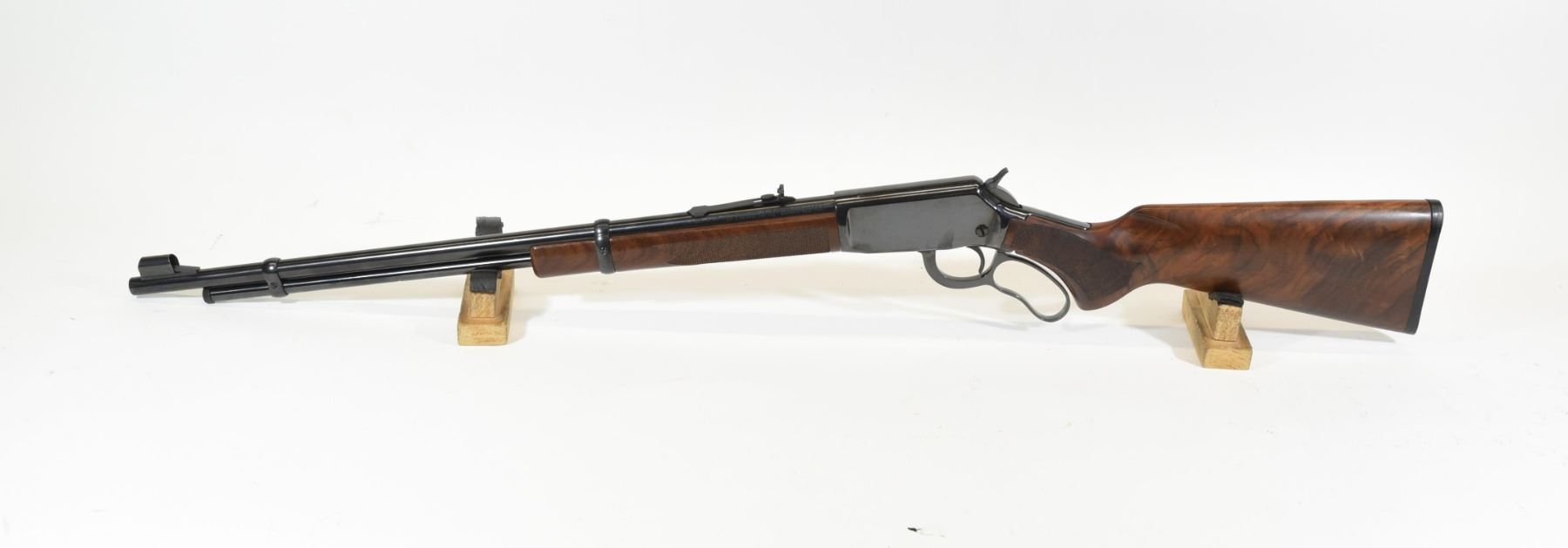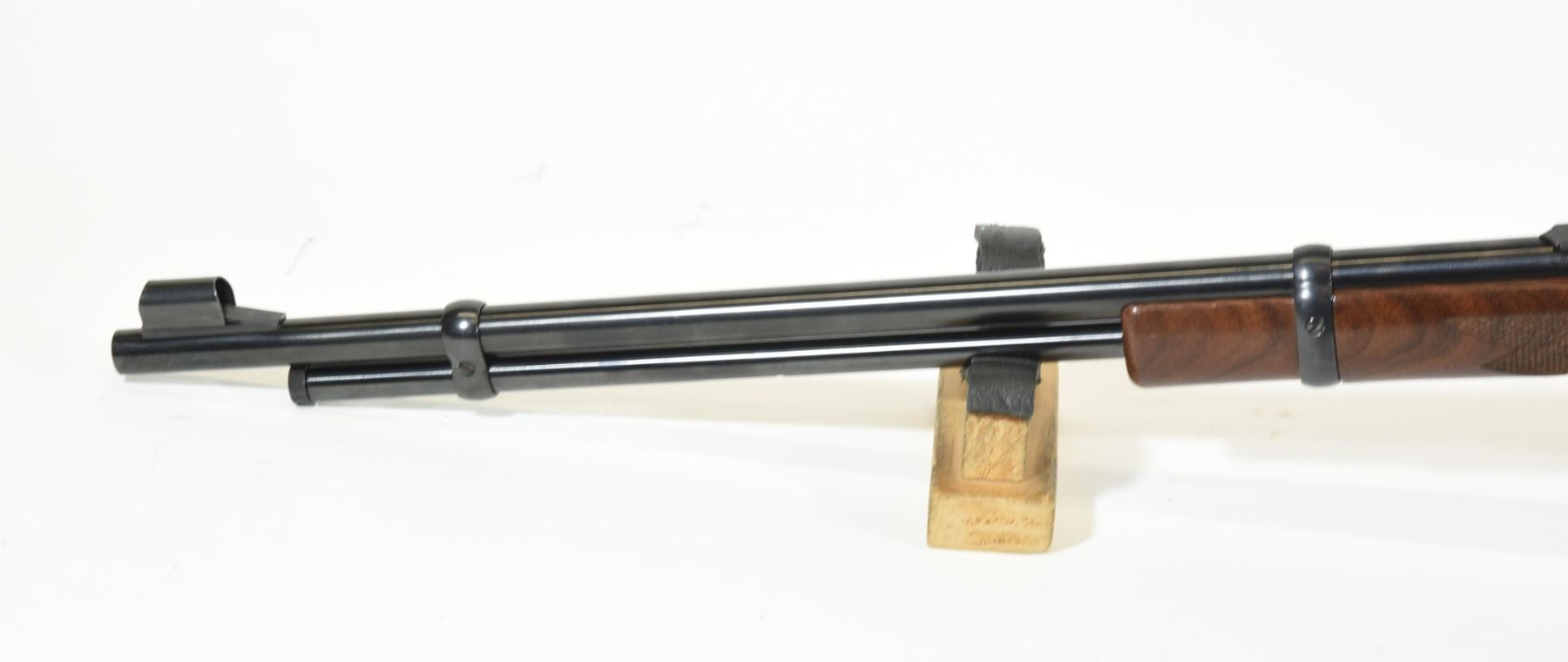 Non-restricted, lever action, 22 LR, 22" barrel, SN F548059. Walnut stock excellent, bluing has a couple scratches on the receiver, bore excellent. Less then 50 rounds fired through it.