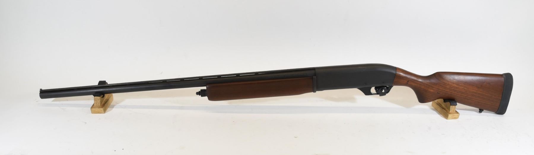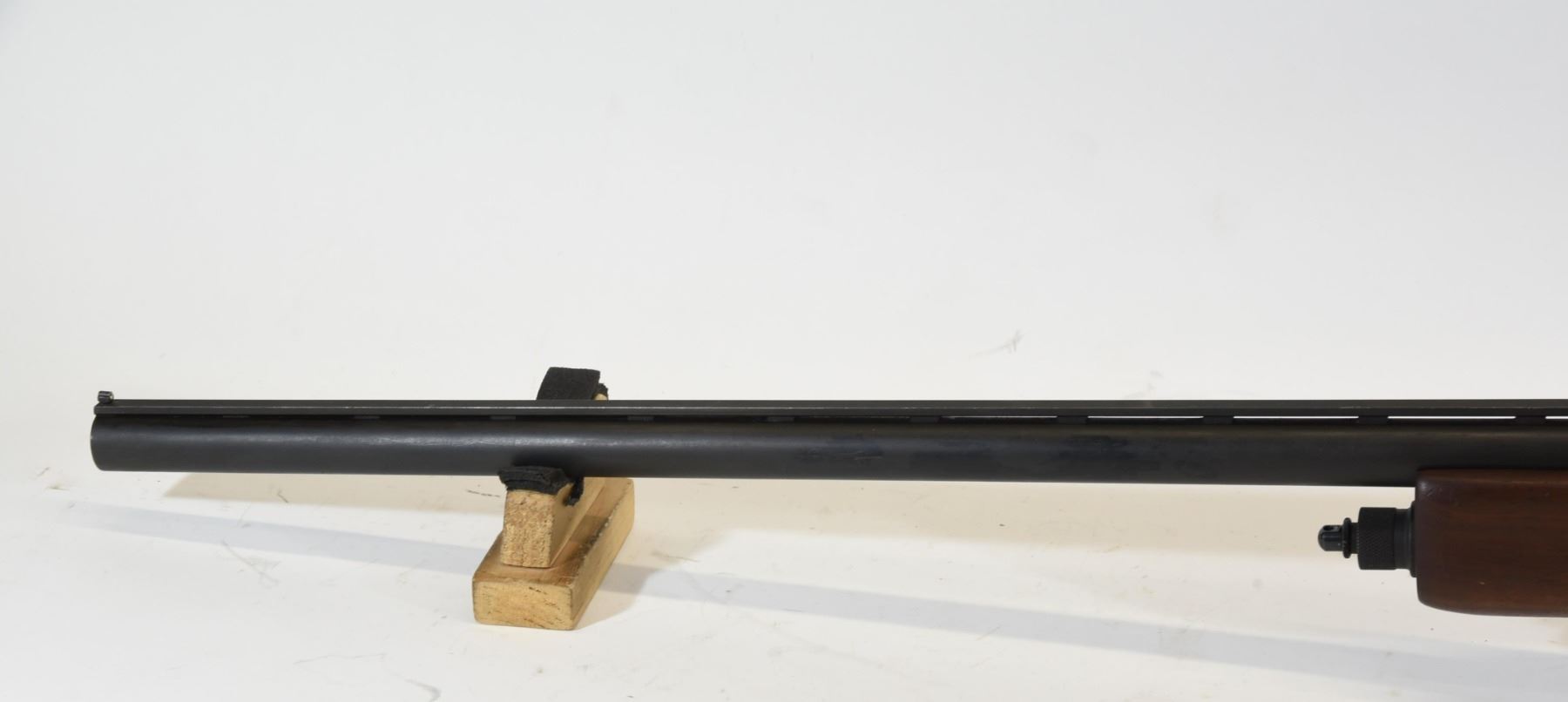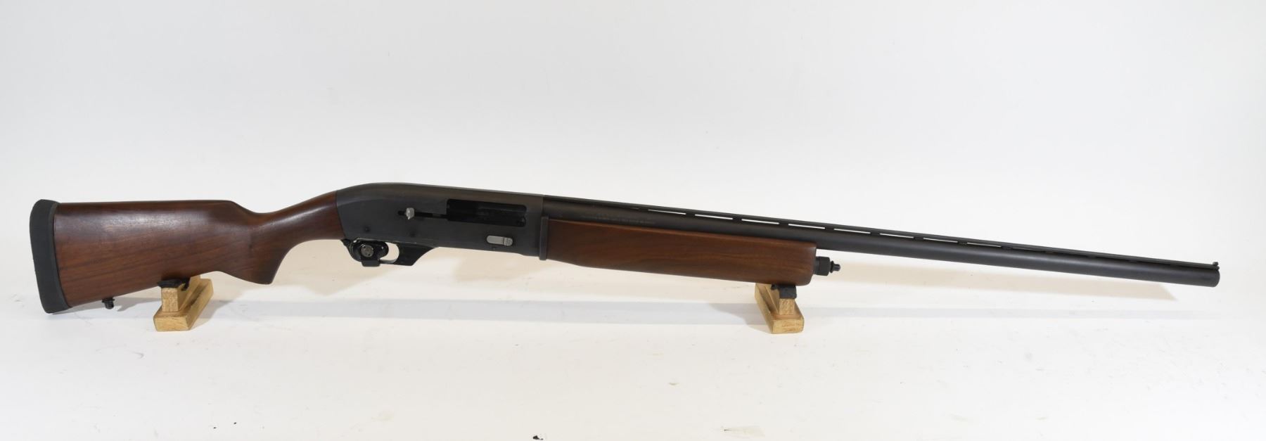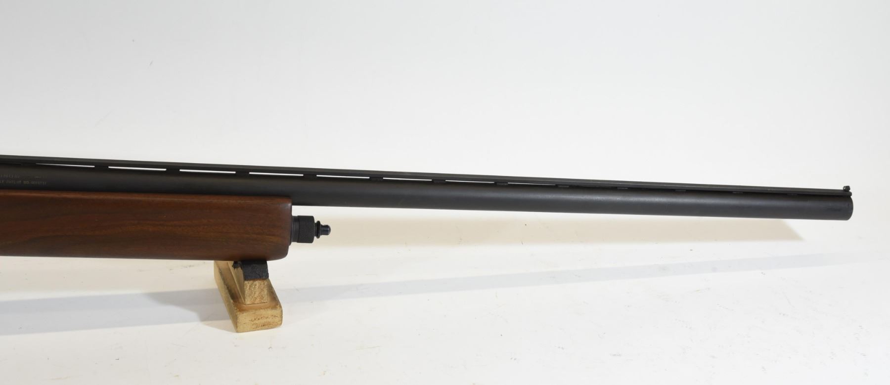 Non-restricted, semi-auto, 10 Ga x 3 1/2", 32" vent rib barrel with removable full choke, SN 100044808. Wood has some dents and chips, matte metal finish worn and scratched around trigger guard, some marks on barrel, bore excellent.
