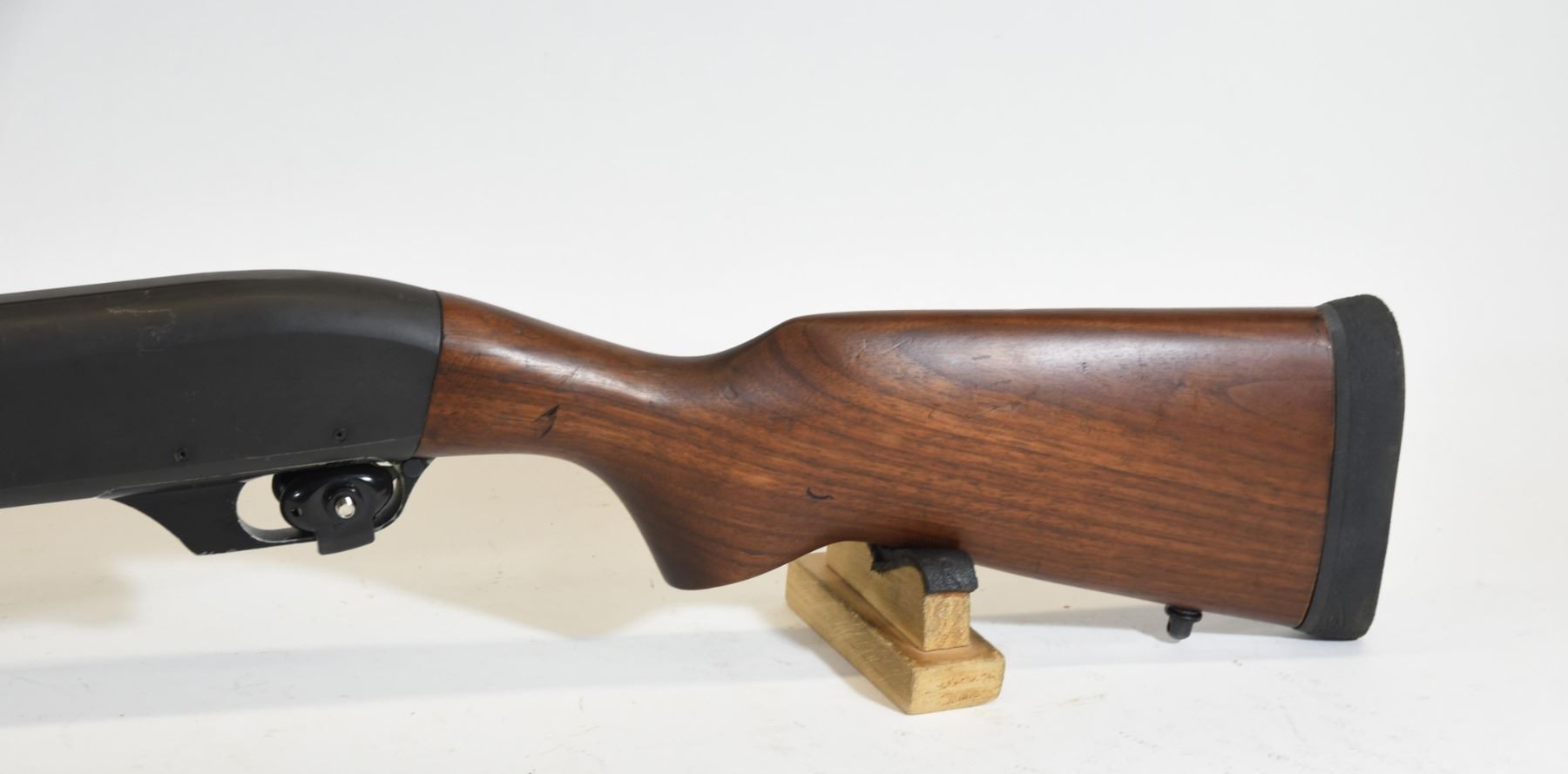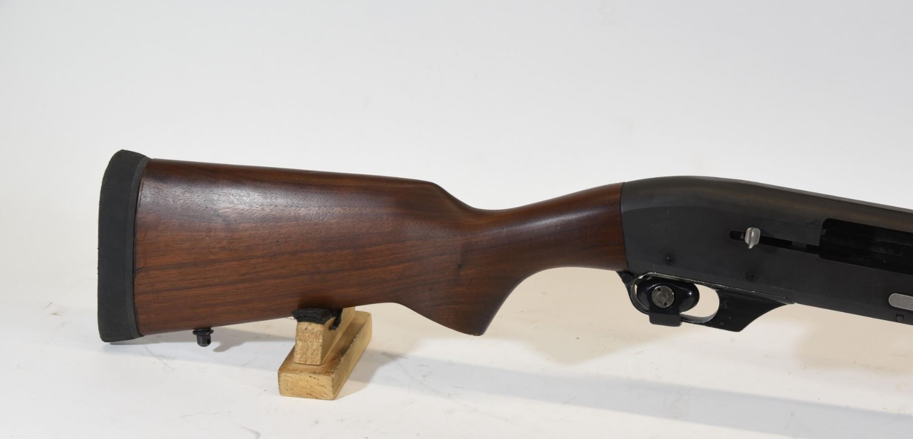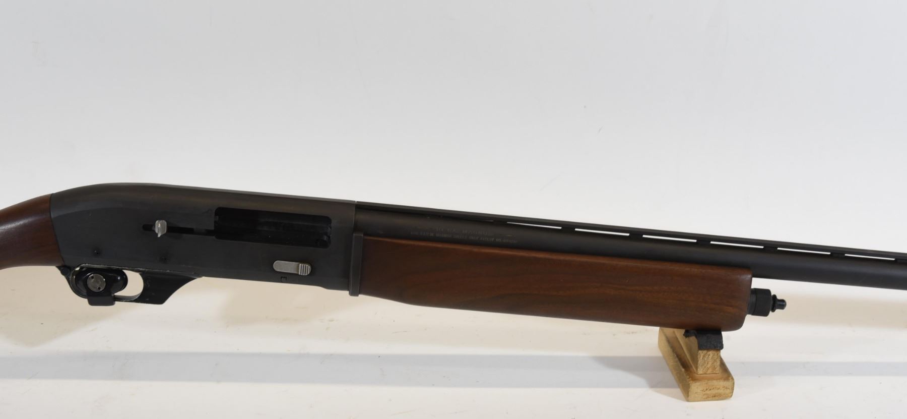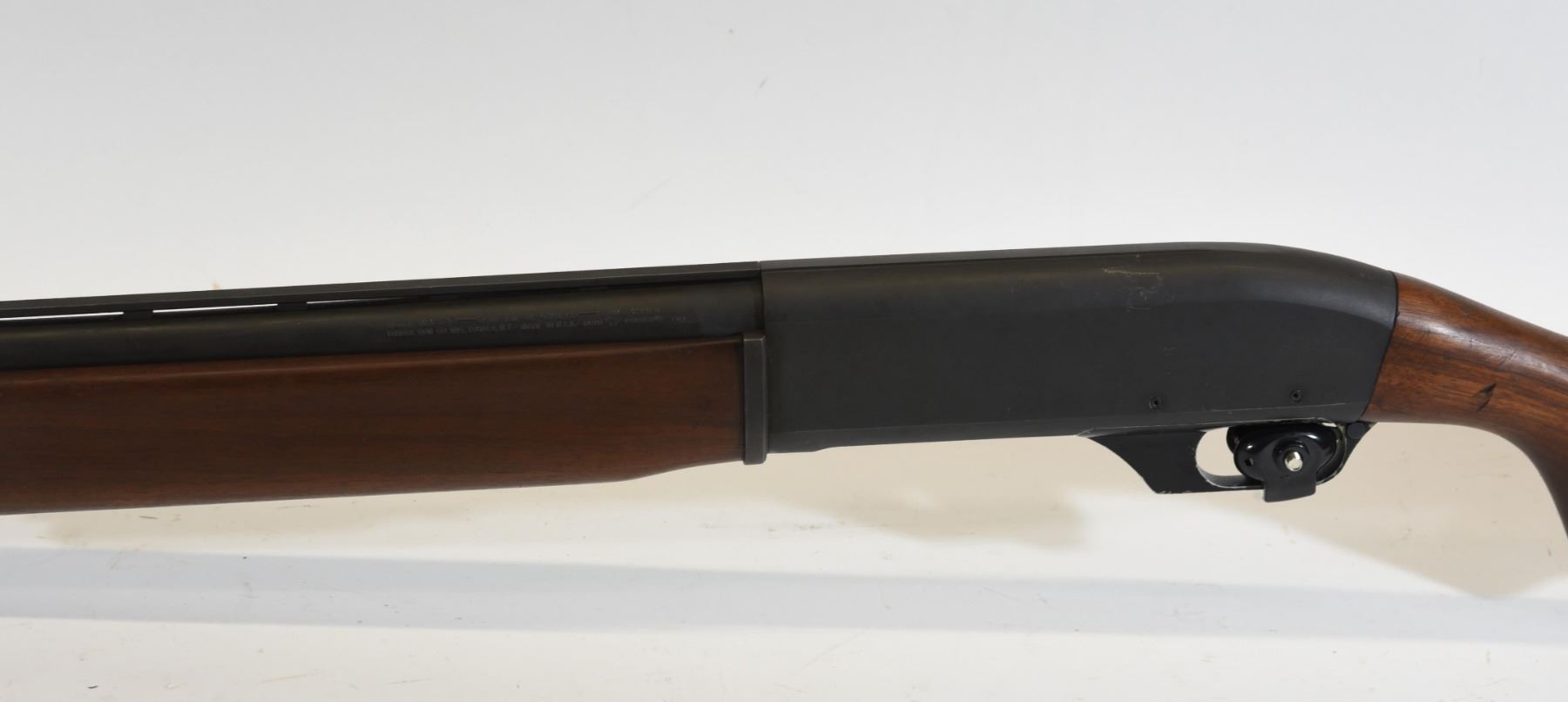 Non-restricted, semi-auto, 10 Ga x 3 1/2", 32" vent rib barrel with removable full choke, SN 100044808. Wood has some dents and chips, matte metal finish worn and scratched around trigger guard, some marks on barrel, bore excellent.
