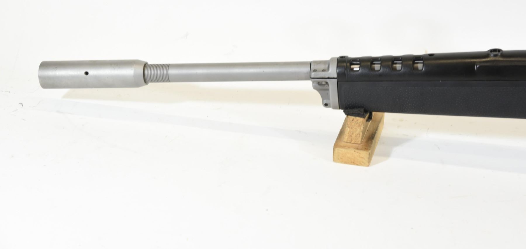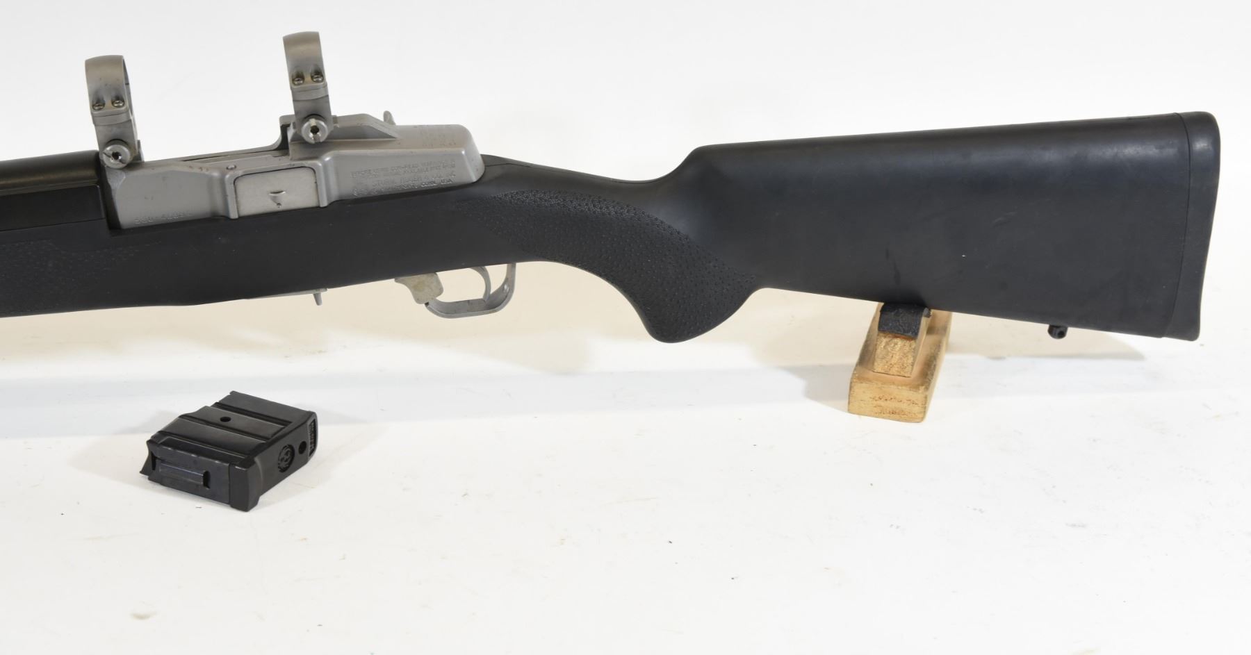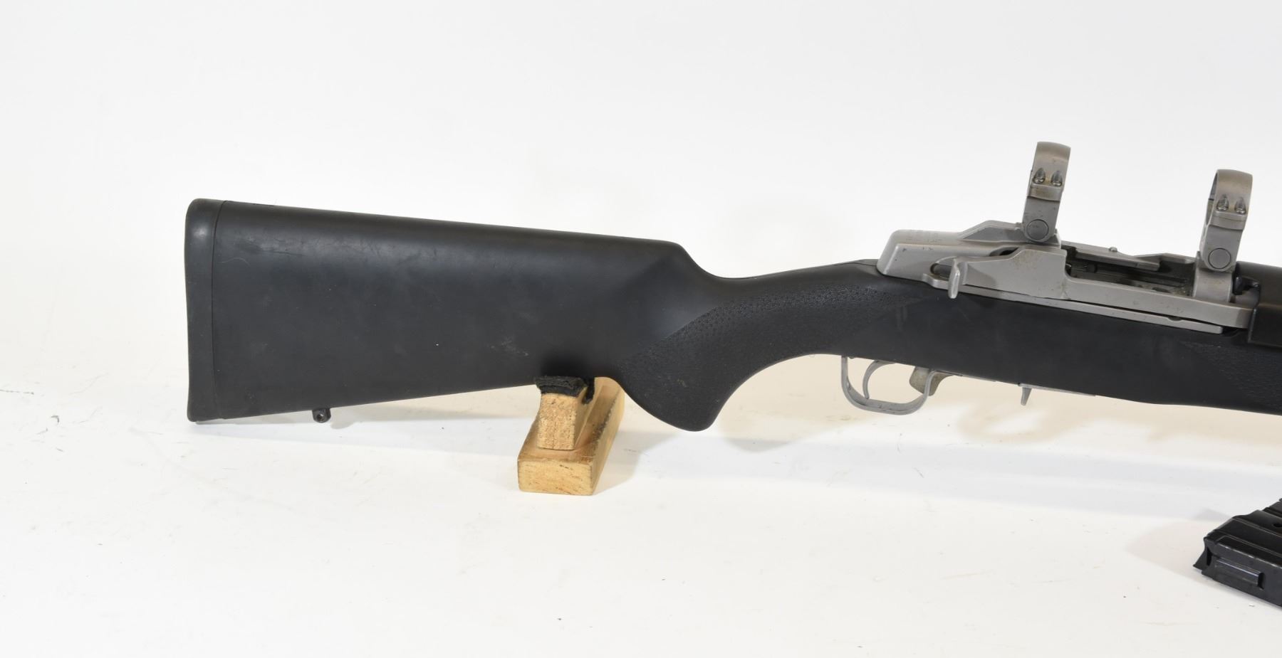 Non-restricted, semi-auto, 223 Rem, 22" barrel with harmonic balancer, SN 58046395. Hogue stock has a few marks, stainless barrel & frame has some pit marks, bore excellent.