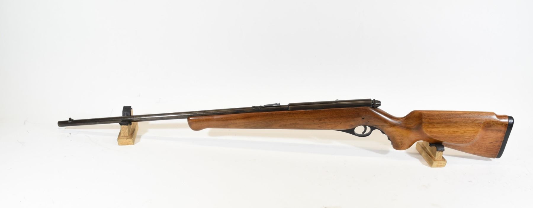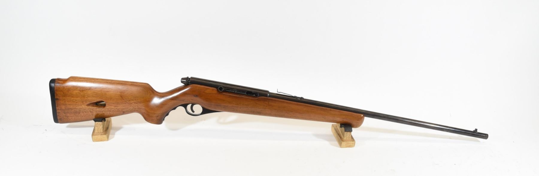 Non-restricted, semi-auto, 22 LR, 24" barrel, SN none. Wood cracked through wrist, bluing turning brown, bore excellent.