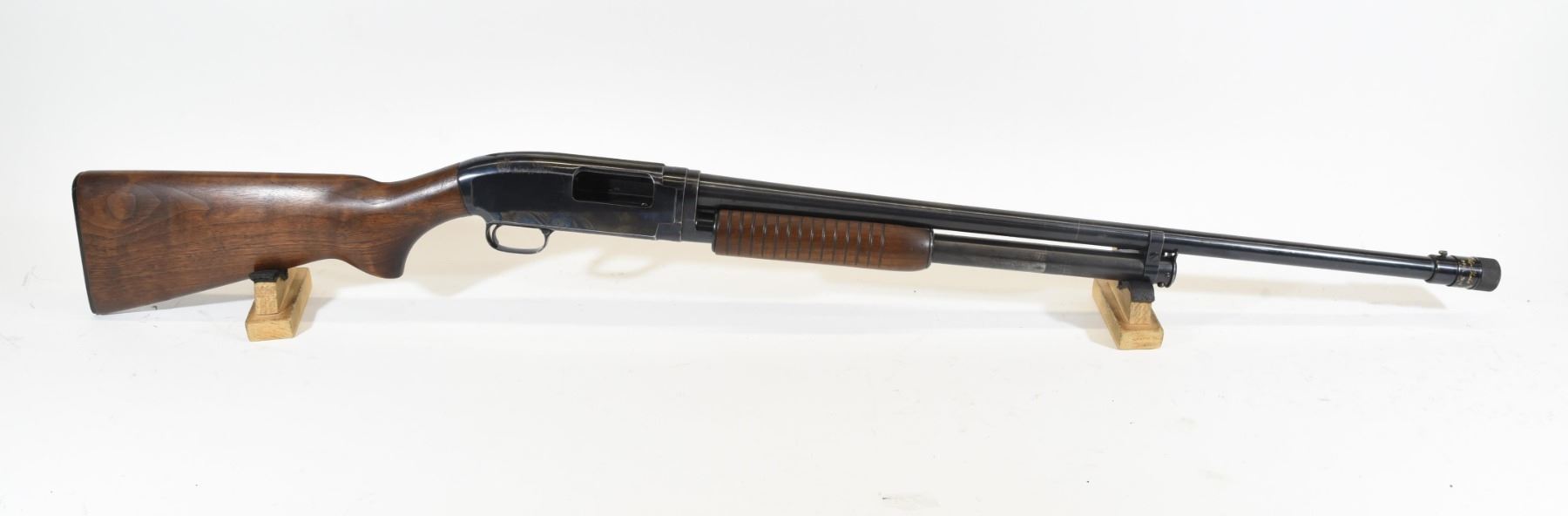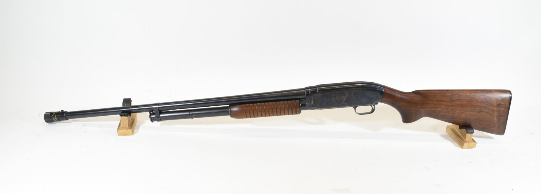 Non-restricted, pump action, 12 gauge x 2 3/4", 28" barrel with a poly choke, SN 1441817. Wood is good, bluing is just starting to turn grey in some spots, bore is good.