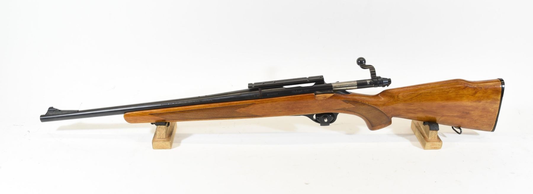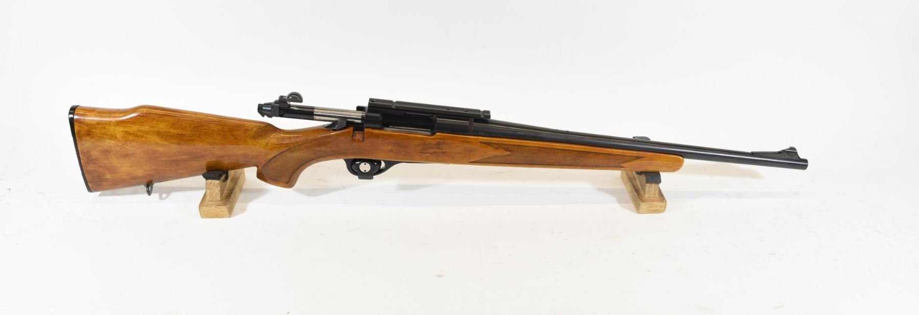 Non-restricted, bolt action, 222 Rem, 18 1/2" barrel, SN A6595586. Wood very good, bluing has wear on receiver, bore excellent.