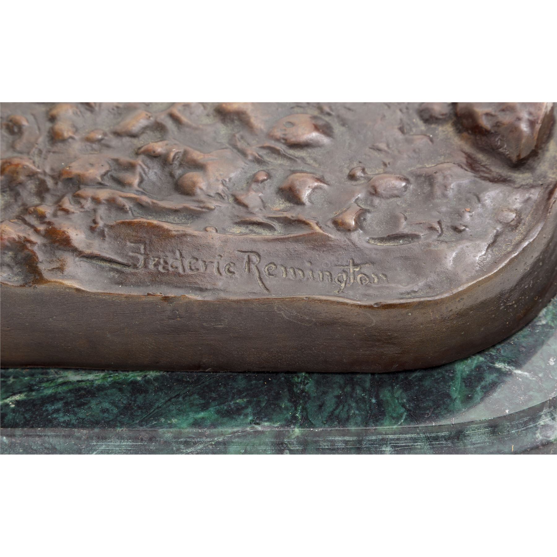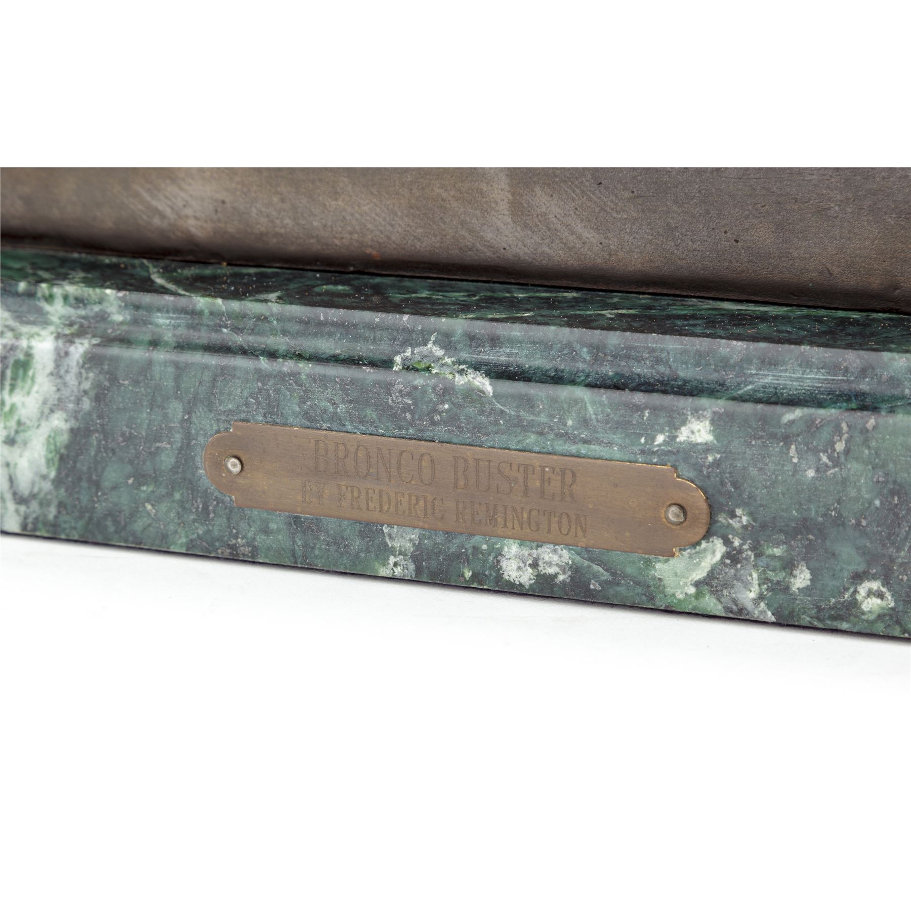 Bronze recast of Frederic Remington's ''Bronco Buster'', on marble base, approx. 22'' tall, in excellent condition showing fine detail. Frederic Remington's first bronze, of which a casting has resided in the White House since Theodore Roosevelt's presidency. Est.: $600-$800.