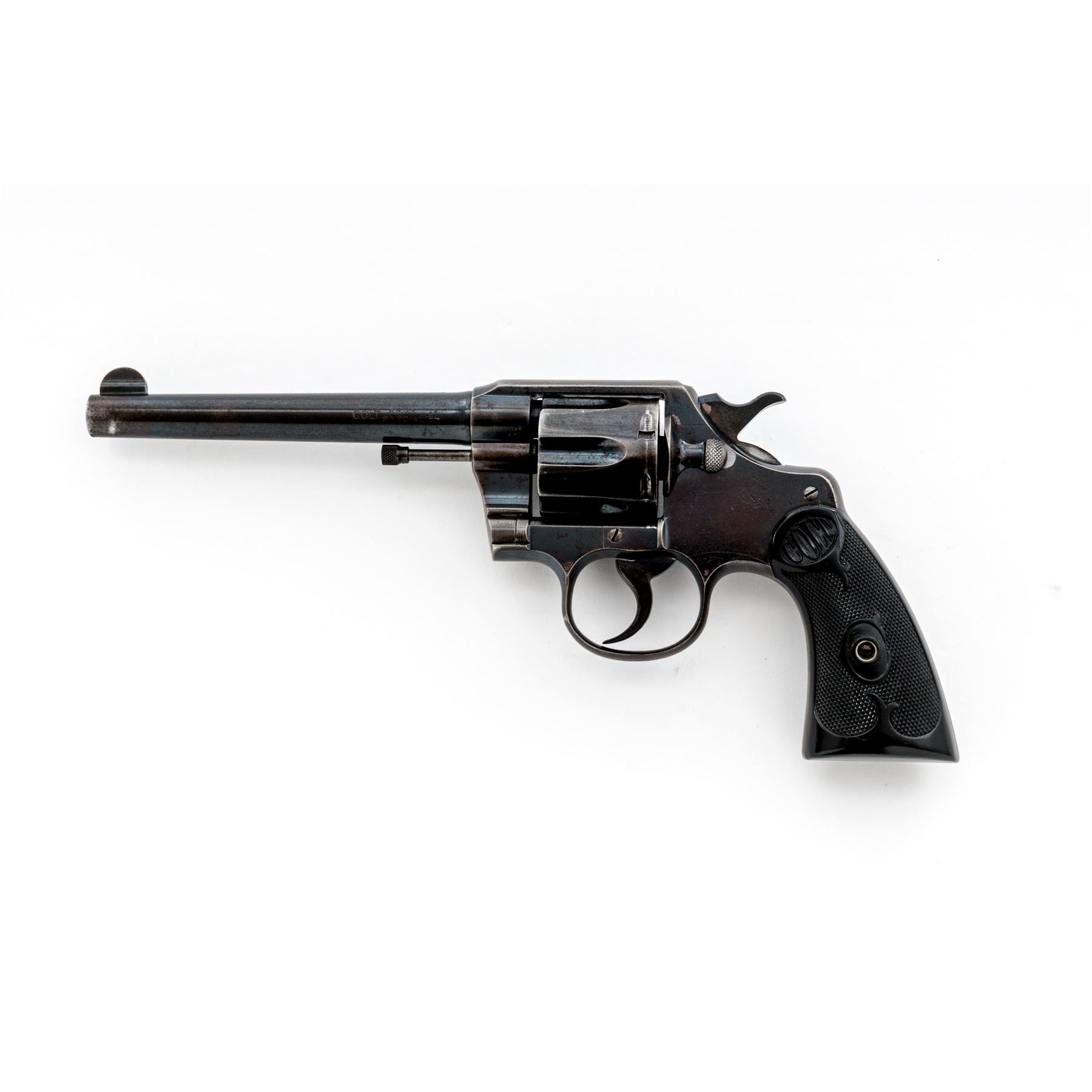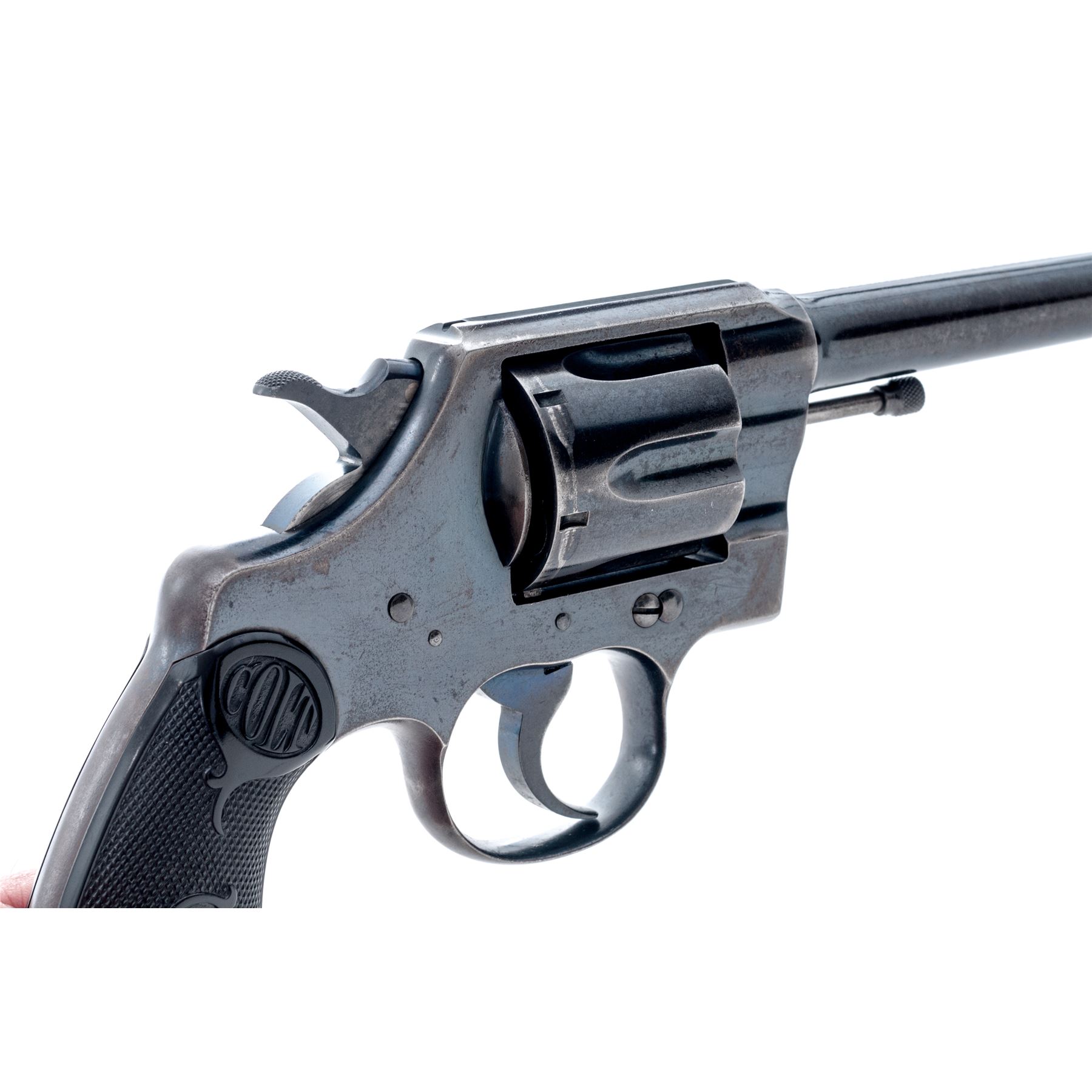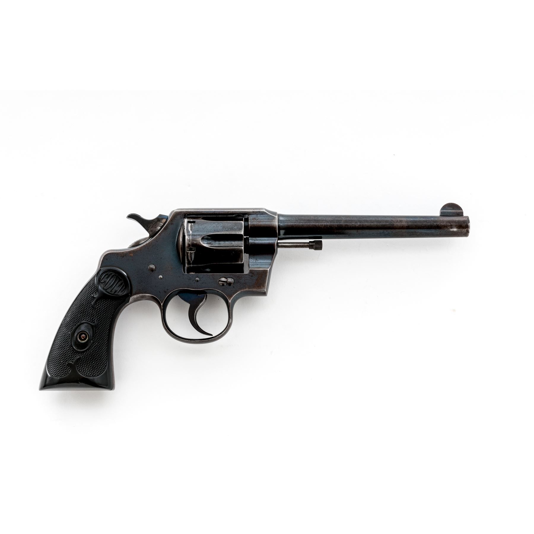 Colt Army Special Double Action Revolver, #335163, .41 Colt cal., 6'' barrel, blue finish, factory checkered hard rubber grips. Mfg'd 1911. Condition is fine retaining approx. 85% thinning and lightly toning blue. Grips with only the lightest flattening to checks. Good action, fine bore. Est.: $500-$750. (C&R/PPT)