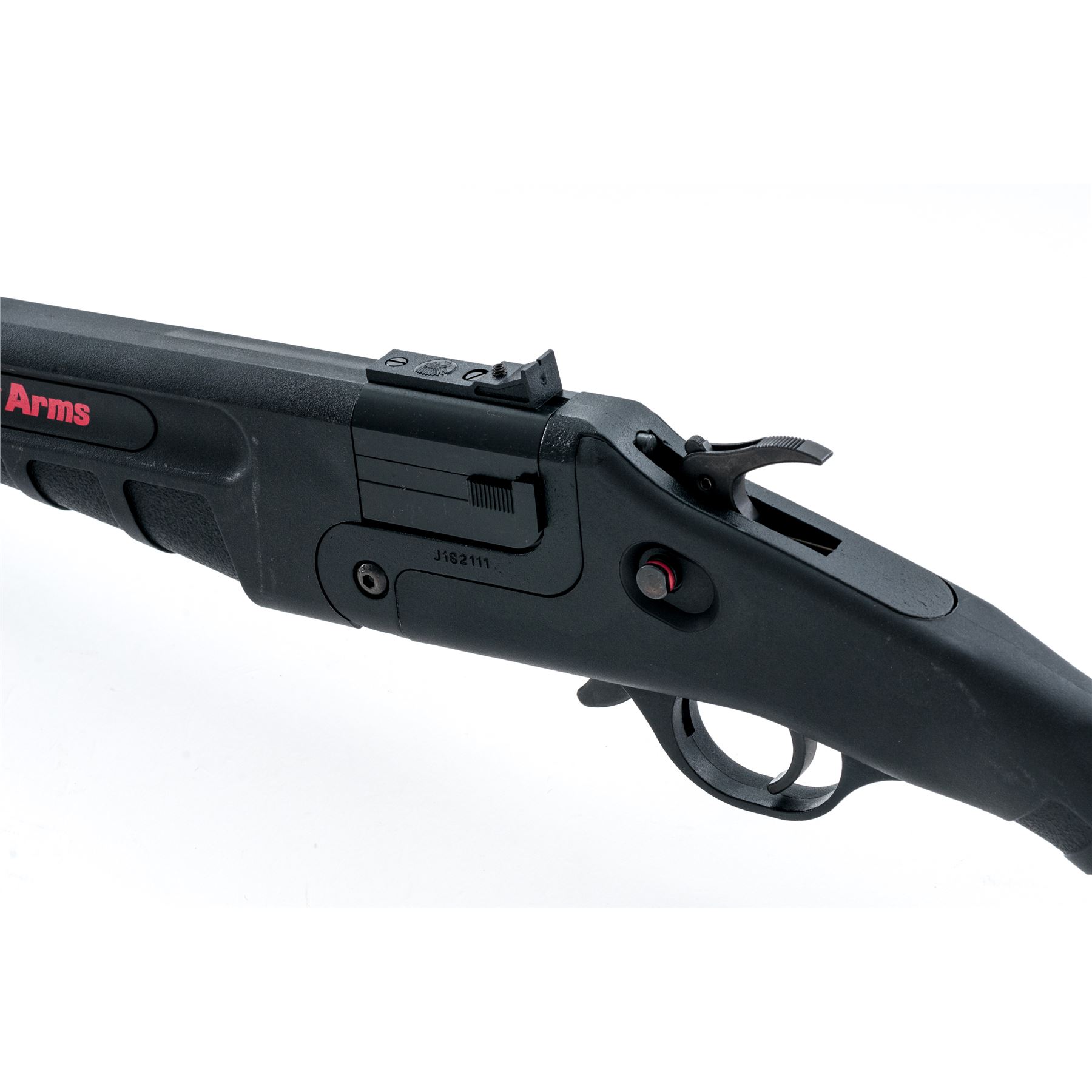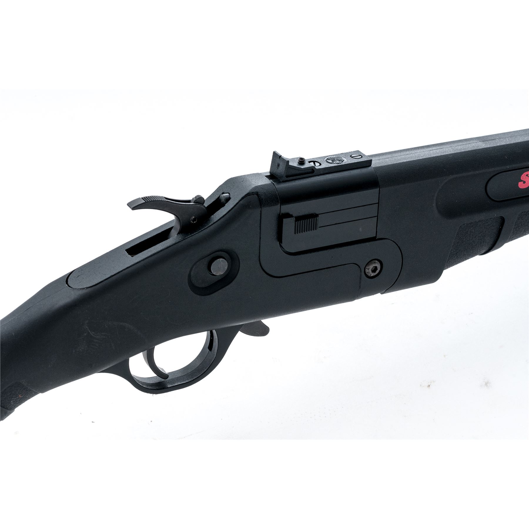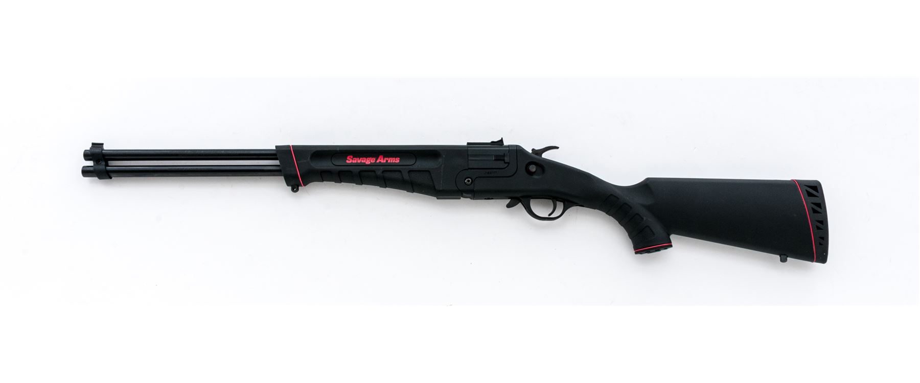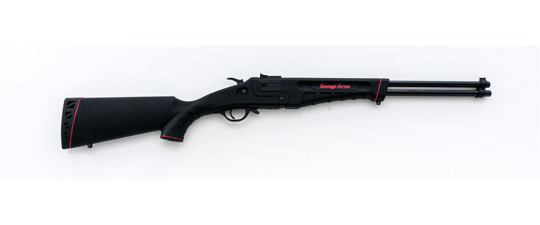 Savage Model 42 .22 WMR/.410 Bore Single-Shot Combination Gun, #J182111, 20'' barrels with dark blue finish; .410 bore with 3'' chamber, black polymer stock and forend with sling swivel studs, black rubber recoil pad, and Savage grip cap. Polymer front sight is integral with barrel band, polymer rear sight is adjustable for both windage and elevation, with crossbolt safety, and manual extractor. Barrel selector switch is in the hammer; break action lever is mounted in front of the triggerguard. Overall length is approx. 36''; LOP: 13.5''. Condition overall is near excellent. Polymer stock and forend with a few light surface scuffs, mainly in the handling areas. Approx. 99%+ factory blue remains. Bottom of triggerguard with a few minor scratches. Excellent action; bores are bright, .22 WMR barrel with crisp rifling. Est.: $250-$400. (Modern)