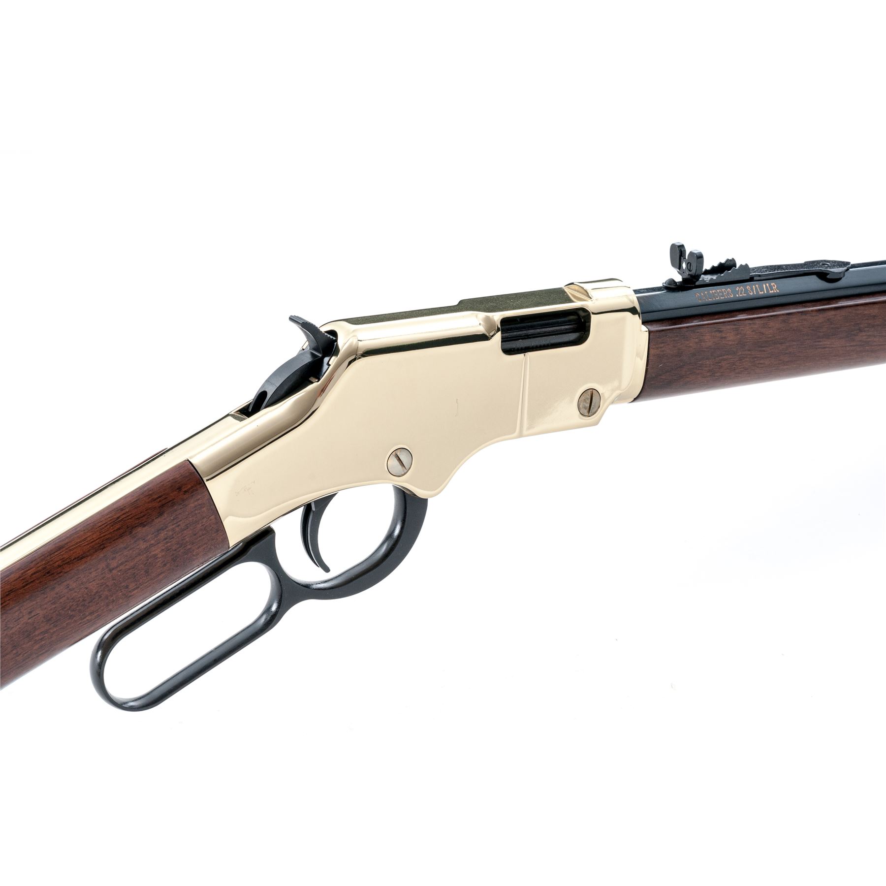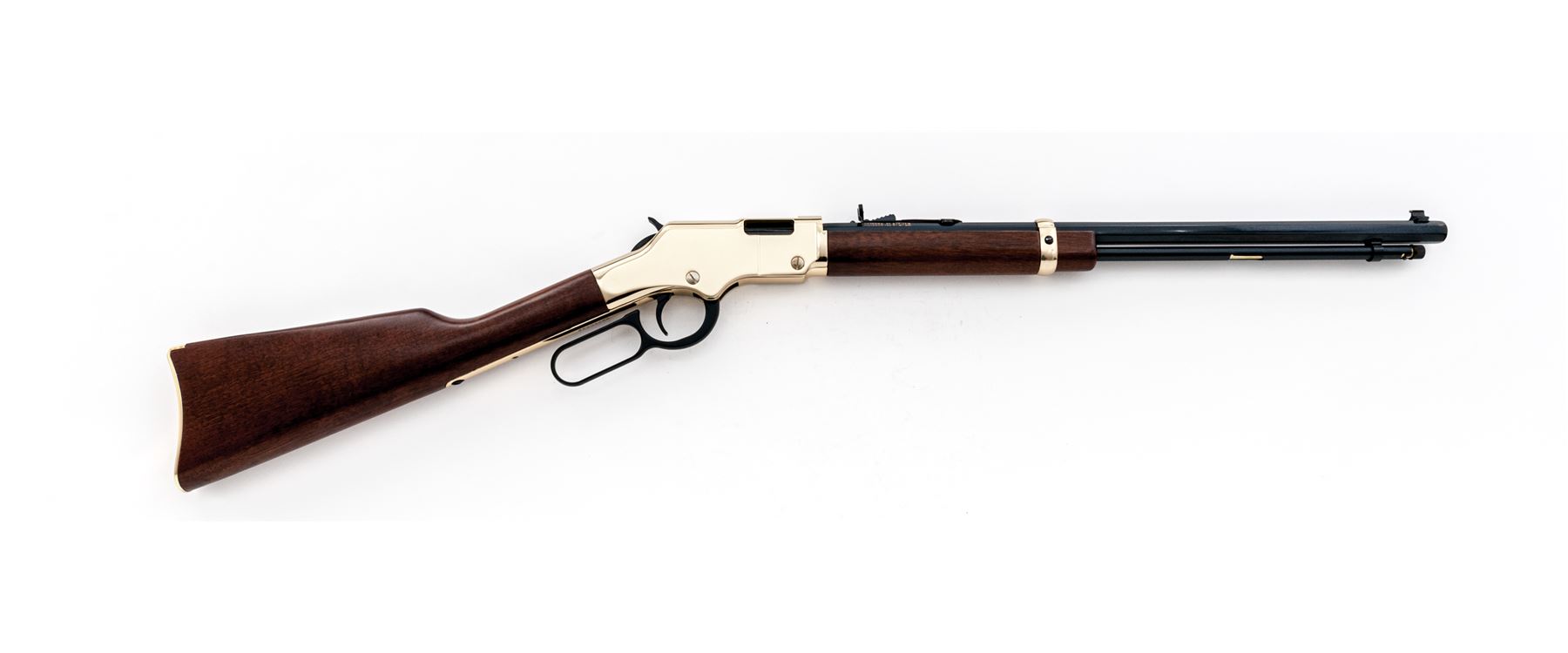 Like New Henry Repeating Arms Co. Model H004 Golden Boy Lever Action Rifle, #GB350362, .22 S-L-LR cal., 20'' blue octagonal barrel, brass frame, smooth straight walnut stock and forend, dovetail brass beaded front sight and semi-buckhorn rear sight. In original box with matching end label and owner's manual. Rifle is in excellent as new overall condition, possibly unfired. Est.: $300-$500. (Modern)