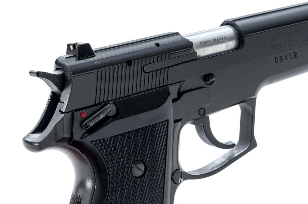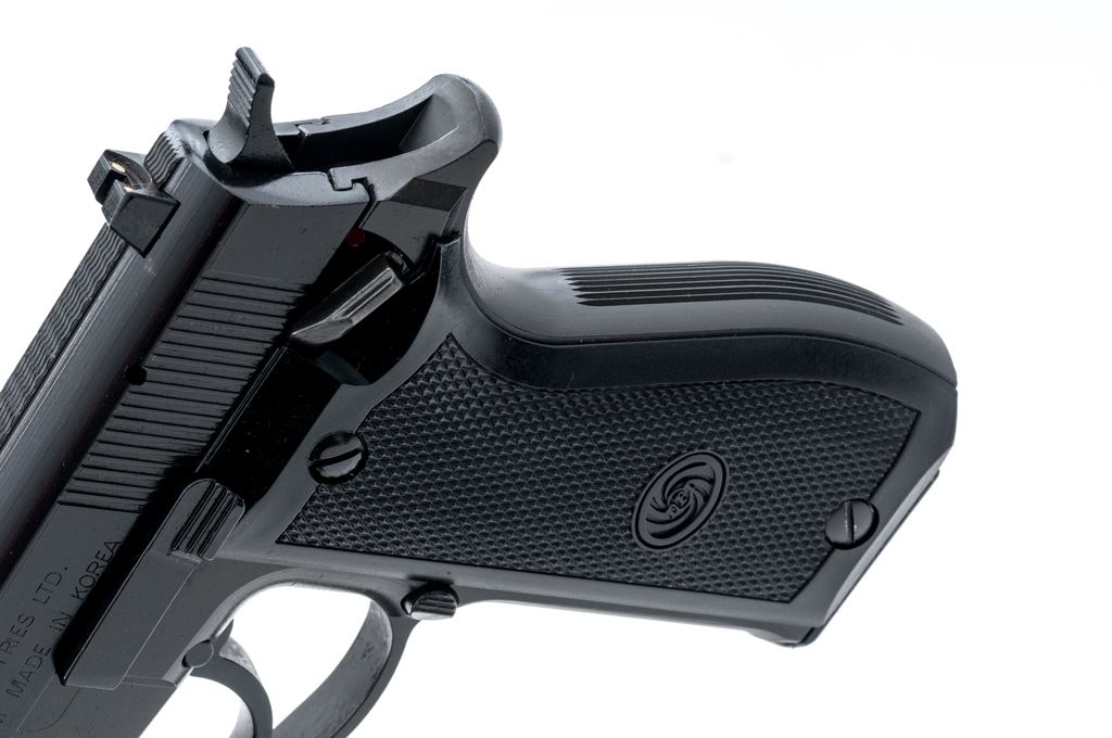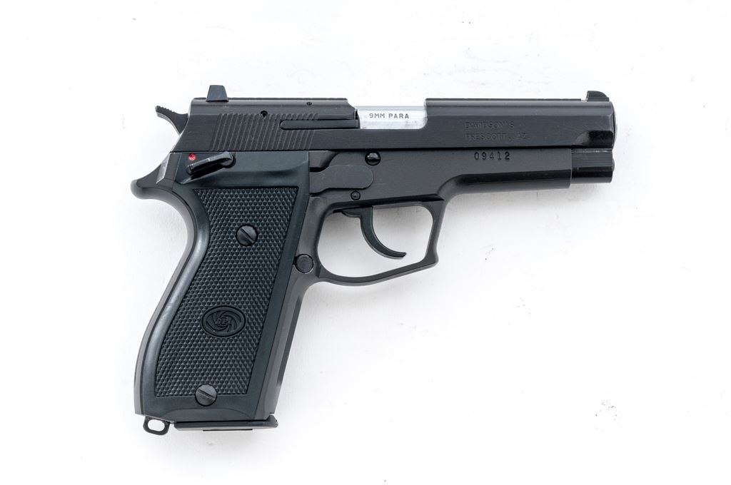 Daewoo Model DP51 Semi-Automatic Pistol, #09412, double/single action, 9mm cal., 4-1/8'' barrel, matte finish, alloy receiver, factory checkered black plastic grips, white 3-dot sights, ambidextrous safety, with one 13-round magazine. Pistol is in excellent as new overall condition retaining approx. 99% original finish, with only a few insignificant marks from handling. Smooth action excellent bore. A high condition and what appears to be only a very lightly used pistol. Est.: $250-$350. (Modern/PPT) (High-cap mag not available to Calif. residents.)