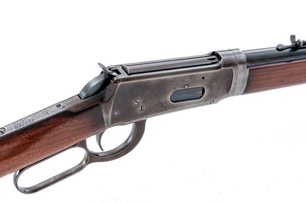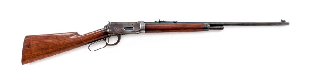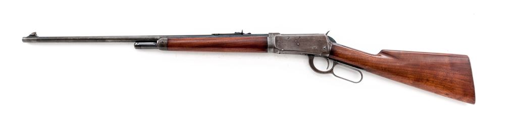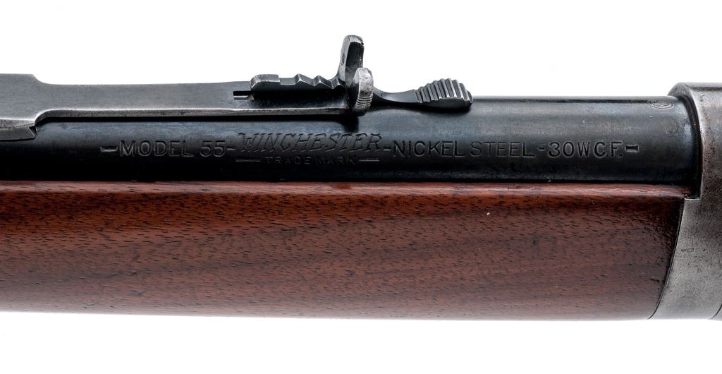 Winchester Model 55 Takedown Lever Action Rifle, #10249, .30 WCF (.30-30) cal., blued 24'' round barrel, with high blade front and dovetailed buckhorn rear sights, marked with maker's name and address at right breech, and ''Model 55/Winchester Trade Mark/Nickel Steel - 30 W.C.F.'' at left; blued tubular half-magazine; blued receiver is marked ''Winchester/Trade Mark/Made In U.S.A.'' on upper tang, and serial number at lower front; loop operating lever; oil-finished walnut forearm with blued nose cap, matching buttstock with checkered steel carbine buttplate. Mfg'd ca. 1929. Condition is very good. Barrel and mag tube retain approx. 40% original blue; receiver, lever and buttplate are clean gunmetal gray. Stocks are sound and smooth with perhaps a thin later coat of varnish. Edges and markings are sharp. Action is strong and smooth; bore is brilliant with deep rifling. Est.: $600-$850. (C&R)