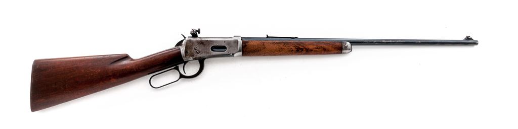 Winchester Model 55 Lever Action Rifle, #1079729, .30 WCF (.30-30) cal., blued 24'' round barrel, with high bead-blade front and dovetailed buckhorn rear sights, marked with maker's name and address at right breech, and ''Model 55/Winchester Trade Mark/Nickel Steel - 30 W.C.F.'' at left; blued tubular button magazine; receiver (fitted with a Redfield multi-adjustable peep sight) is marked ''Winchester/Trade Mark/Made In U.S.A.'' on upper tang, and ser. no. at lower front; loop operating lever; oil-finished walnut forearm, with blued steel nose cap, matching buttstock with checkered steel shotgun buttplate. Mfg'd 1930. Condition is very good. Barrel retains approx. 80% original blue; receiver is bright metal with traces of finish; lever and buttplate are dark gunmetal gray. Stocks are sound with minor marks from age and use, and a thin later coat of varnish. Edges and markings are sharp. Action is strong and smooth; bore is bright with sharp rifling. Oddly enough, the Model 55 without the takedown feature such as this one, is scarcer. Est.: $600-$850. (C&R)