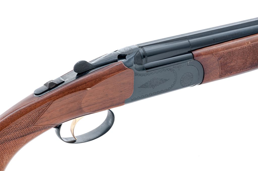 Churchill by Kassner Field Grade Over/Under Shotgun, #129344. 20 ga. 28'' vent rib barrels have 3'' chambers and are choked IC/Full. Boxlock action features a single non-selective trigger, auto safety and simple extractors. Receiver is lightly roll engraved. The Field Grade wood has a high gloss finish with pressed checkering and original buttplate. Mfg'd 1987. Condition is very good, with many small handling marks to wood but little wear to action, which locks tight; bores are very good. Est.: $400-$550. (Modern)
