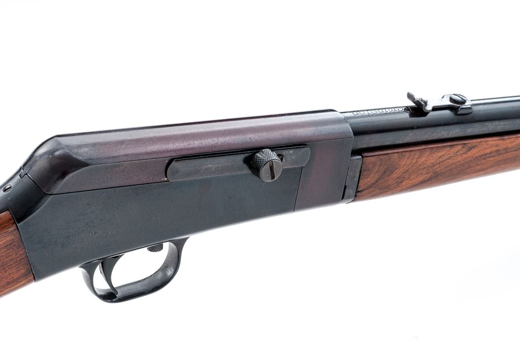 Remington Model 16 Semi-Automatic Rifle, #3696, .22 Rem. Auto cal., 22'' round barrel, blue finish, walnut stock and forend. Mfg'd 1914-1928. Condition is excellent as refinished, retaining approx. 98% of a later accomplished immersion type blue. Stocks have been very nicely redone. Action is crisp, bore is good. Est.: $200-$400. (C&R)