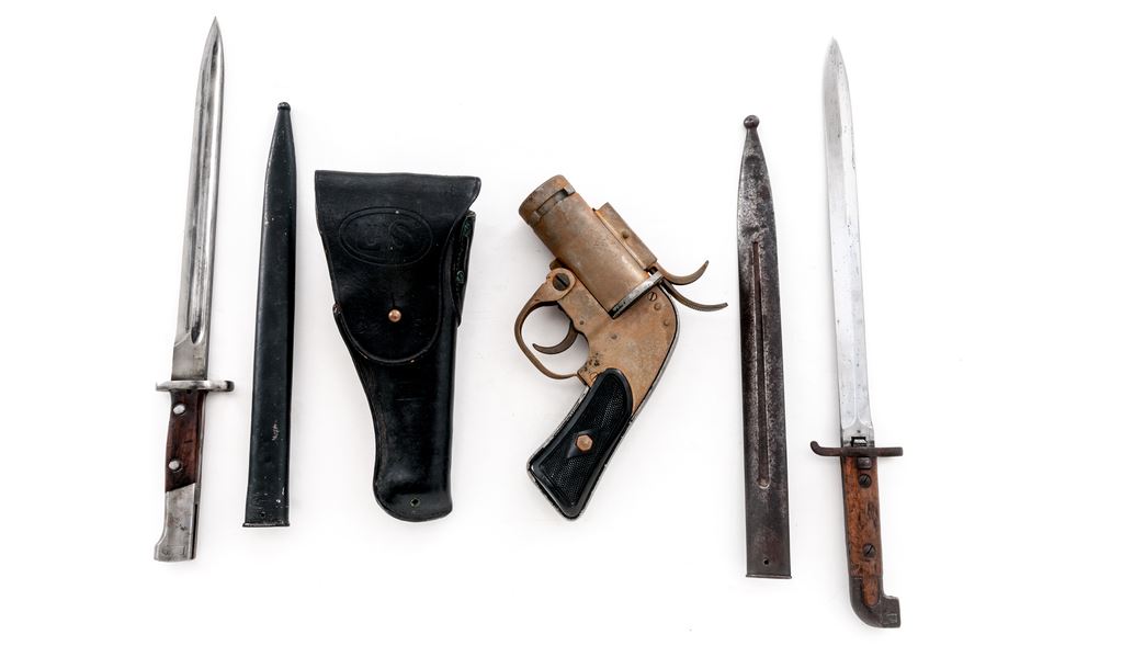 Lot 941 Lot: Bayonets, Holster, Flare Pistol