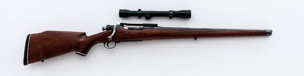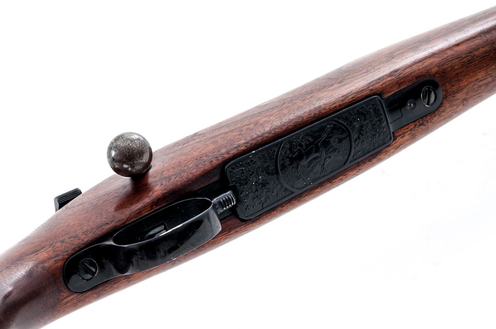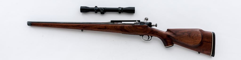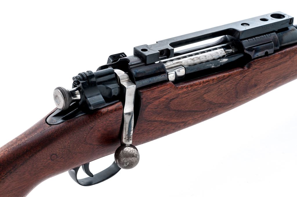 Sporterized U.S. M1903 Bolt Action Rifle, by Springfield, with scope, #1313016, .30-06 cal., 19.75'' barrel, blued finish, Monte Carlo stock, no sights fitted. Includes a Buehler scope mount. Rifle has been sporterized by shortening the barrel and removing most of the military parts. Bolt has been jeweled and a new handle and flip safety attached. Condition is very good with almost all of the reblued finish remaining on the metal. Stock is very good with light handling marks. Action is smooth, bore is excellent. Scope is marked ''LYMAN ALL AMERICAN 4X''. Condition overall is very good with clear optics. Est.: $300-$500. (Modern)