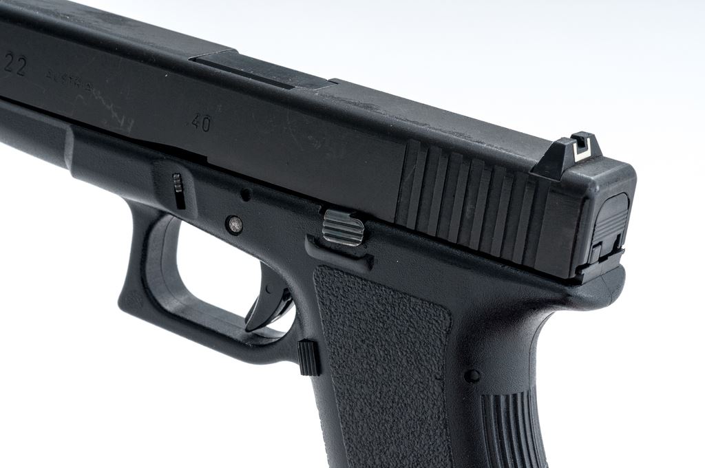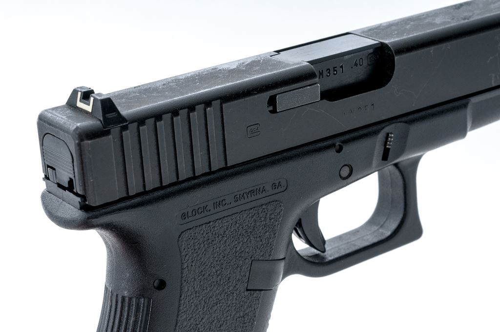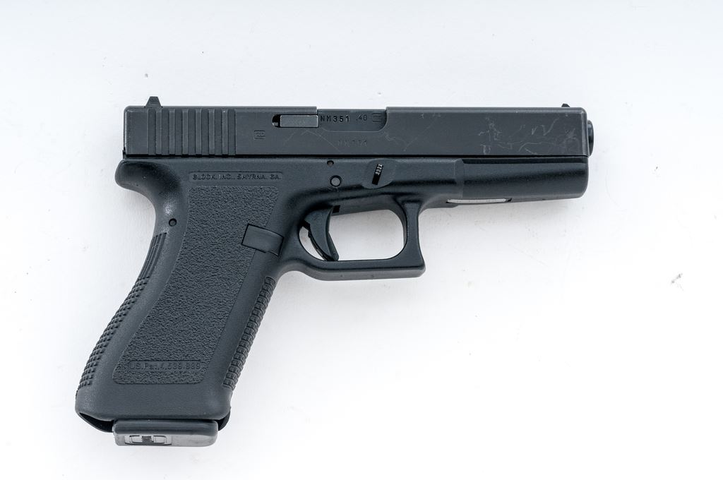 Glock Model 22 Gen 2 Semi-Automatic Pistol, #NM351US, .40 S&W cal., 4.5'' barrel, matte black finish, black polymer frame, white-dot front sight and white outline square-notched rear sight, with one factory 15-round Glock magazine. Slide rates as very good+ with moderate surface scuffs to the matte finish. Frame is near excellent with a few small handling marks. Action is tight, bright bore with well-defined rifling. Est.: $300-$450. (Modern/PPT) (High-cap mag not available to Calif. residents.)