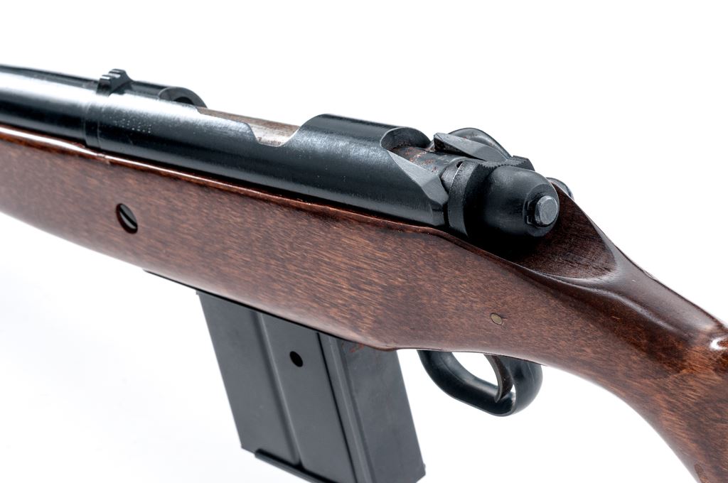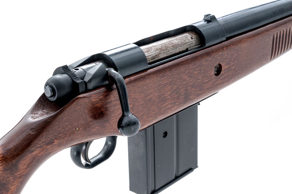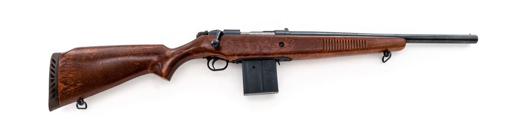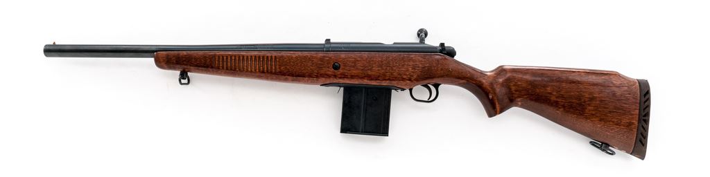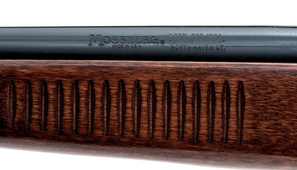Mossberg Model 595 Bolt Action Magazine Fed Shotgun, #1383208, 12 ga., 18.5'' barrel with 3'' chamber and CYL bore; blue finish, one-piece pistol-grip birch stock with grooved forend, sling swivels, and vented brown rubber recoil pad, brass bead front sight and ''U''-notched rear sight, bolt mounted safety and includes one magazine. Condition is very good retaining most of the original blue finish; magazine, bolt body, and barrel near the chamber with some spots of surface rust which should clean. Stock with scattered very light dings and handling wear. Crisp action, bright bore. Only mfg'd ca. 1983-1985. Est.: $125-$250. (Modern)