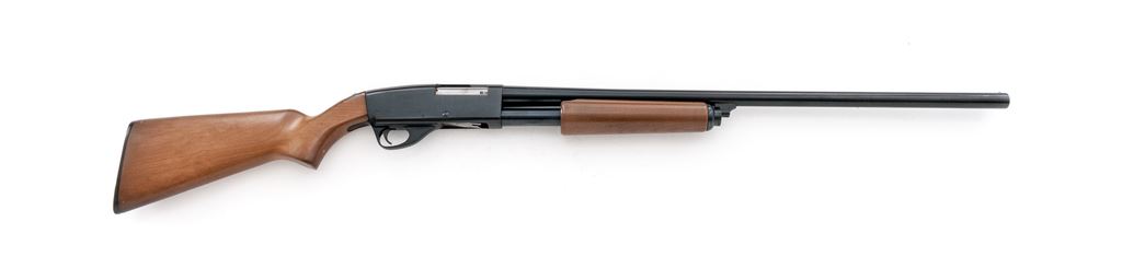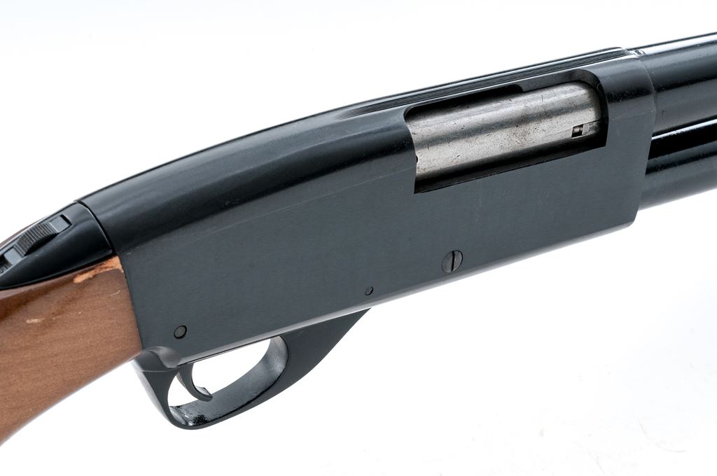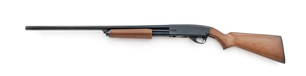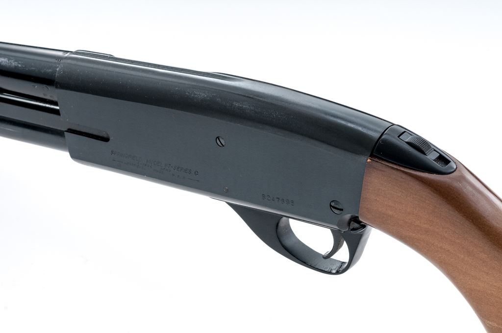 Savage/Springfield Model 67 Series C Pump Action Shotgun, #B247696, 12 ga., 3'' chamber, 28'' barrel, Mod. choke, silver bead front sight, smooth pistol-grip wood stock and forend, with grooved black plastic buttplate. Overall condition is very good+ with approx. 98% original blue finish. Receiver with a few light scratches, the most noticeable being to the left side. Wood with scattered small impressions and scratches, mainly on the grip and forend. Excellent action and bright shiny bore. Est.: $100-$200. (Modern)