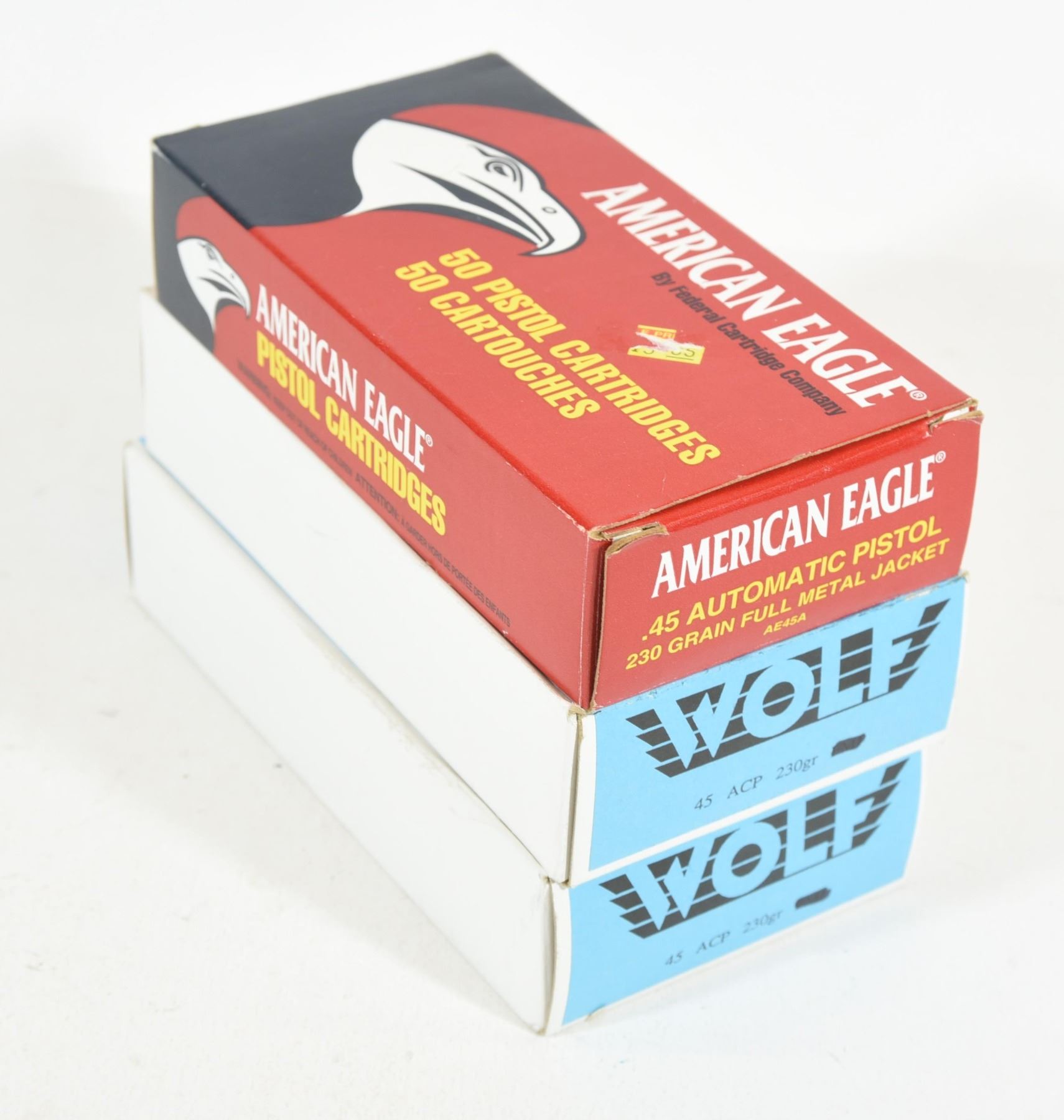 Lot 1011 150 Rnds Wolf & American Eagle 45 ACP 230 Grn FMC