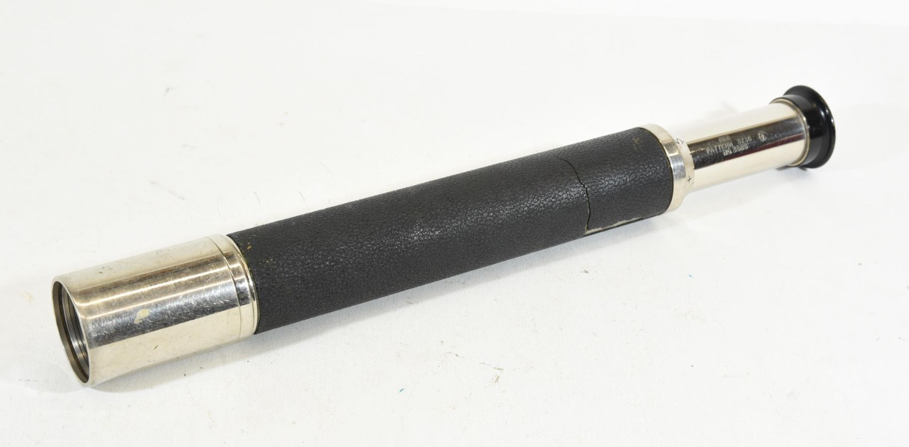 CKC Pattern 373C, No. 3585, 12 3/4" closed and 21 3/4" when extended. The leather wrapping is cracked and some is missing by the eye piece.