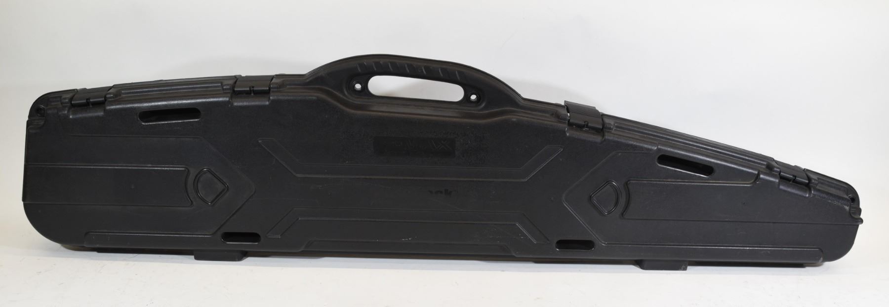 1) Woodstream, 49" long x 7 1/2" wide, no keys. 2) ProMax protector series model 1511, 52 1/2" long x 9 1/4" wide. Can be locked for a gun with a scope.