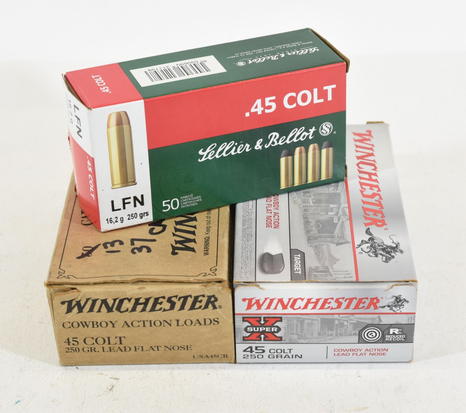 1) 50 rounds, Sellier & Bellot. 2) 50 rounds, Winchester Super X. 3) 13 rounds, Winchester Cowboy action loads and 37 pieces of brass.