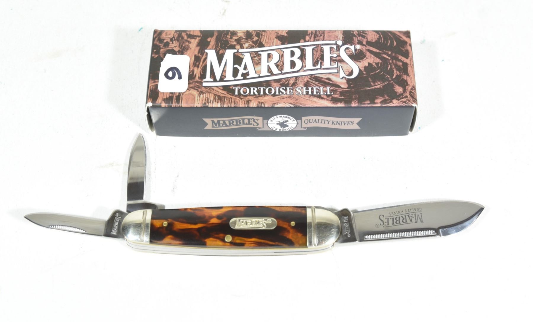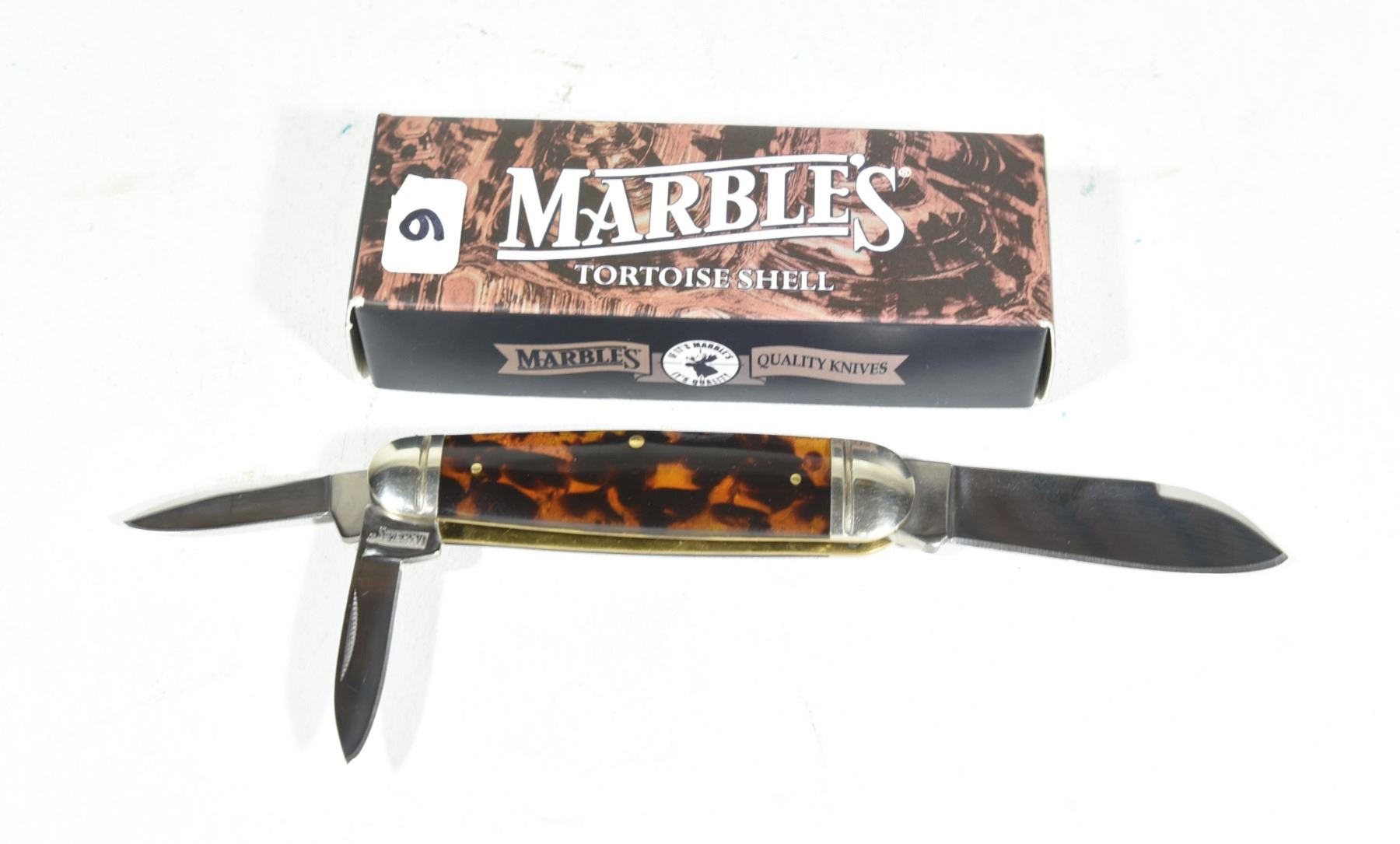 The Marble's Sleeveboard Whittler is a manual folding traditional pocket knife for everyday carry. The 440 stainless steel, drop point and pen blades have mirror finishes, and nail nick openers. The handle is made of imitation tortoise shell that features nickel silver bolsters and an inlay shield. Like most traditional pocket knives, it has a slip joint. Knife is 3 1/2" when closed.